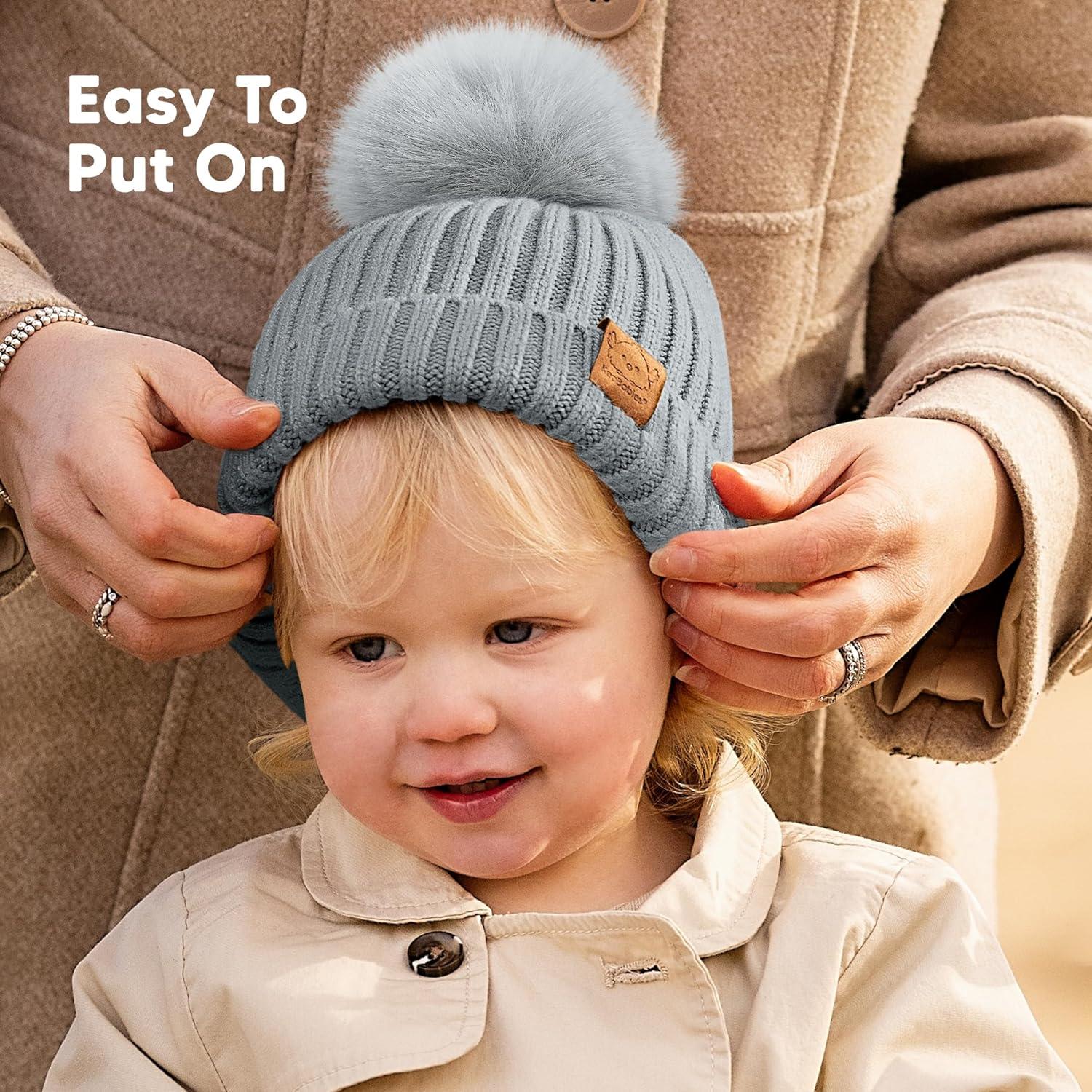Get up to 70% off on 2-Pack Baby Hats for Girls, Boys – Stretchy Baby Beanies, Cute Newborn & Toddler Winter Hat, Soft & Warm Pom Pom Beanie for Infant, Toddler, Boys, Girls 6-36 Months (Ember, M)(Steel) styles during our end-of-season clearance event.