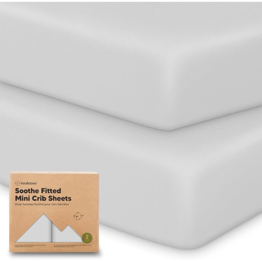 2-Pack Mini Crib Sheets – Each KeaBabies Soothe Mini Crib Sheets set comes with two organic mini crib sheets for boys and girls that can perfectly fit the pack and play mattress pads and mini crib mattresses sized at 38” x 26” up to 5” height.