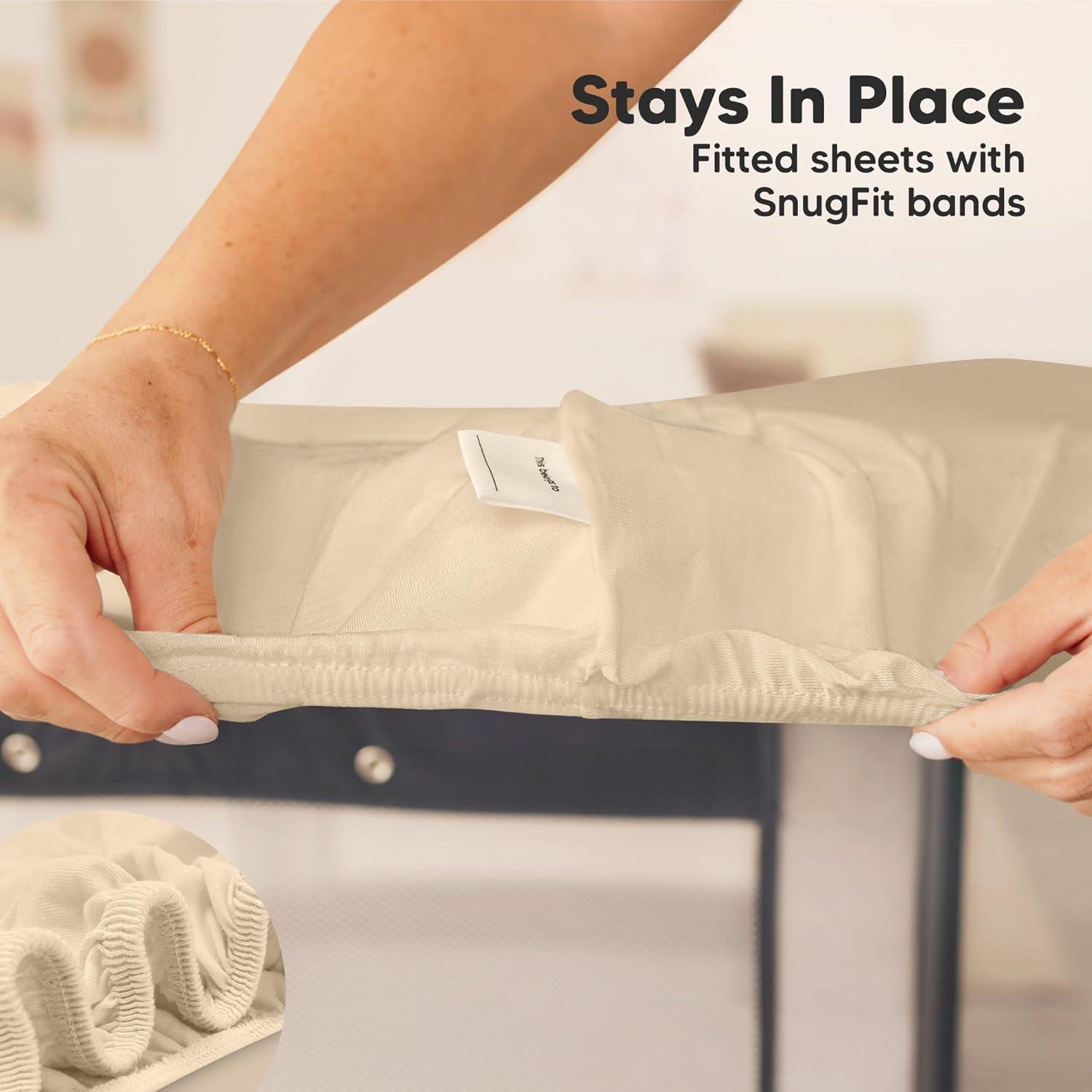 Easy On, Easy Off – Our fitted mini crib sheet uses SnugFit Tech, a smart fabric knit that allows the fabric to stretch when you are fitting or removing the playard crib sheets neutral. No more struggling with rigid fabric!
