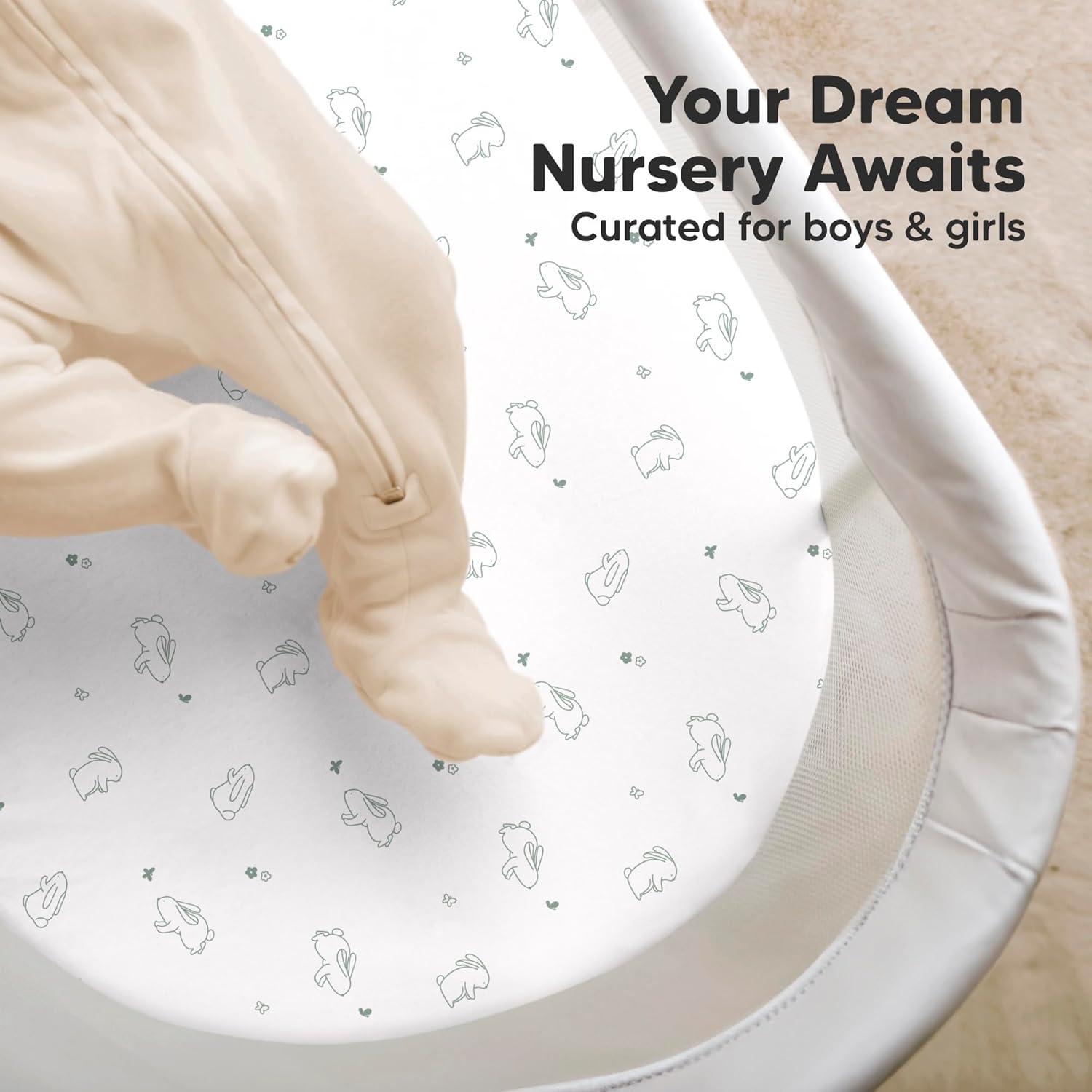 2-Pack Organic Bassinet Sheets for Girls, Boys - 100% Cotton Bassinet Mattress Sheets Compatible with Halo Bassinest Swivel Sleeper, Graco,Baby Delight,Chicco,Unisex Fitted Bassinet Sheets (Beach Day)(Bunnies)
