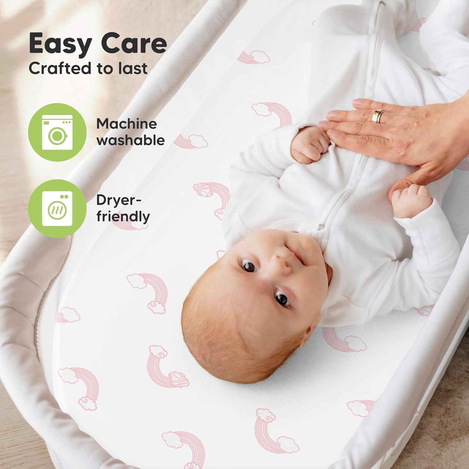 Soft & Breathable – Made of 100% premium quality jersey cotton, the Soothe Bassinet Sheets ensure maximum comfort for your baby during sleep time. Our breathable fitted bassinet sheet is suitable for all skin types, including the most delicate skin.
