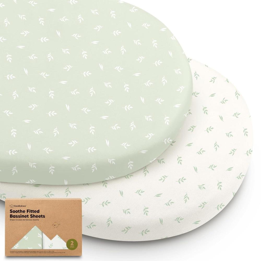 2-Pack Bassinet Fitted Sheets – KeaBabies Soothe Bassinet Mattress Sheets, sized at 33″ x 17″ with a depth of up to 4″, provide a universal fit for all bassinet mattress pad types. They can be used as hourglass, oval, rectangle bassinet sheets.