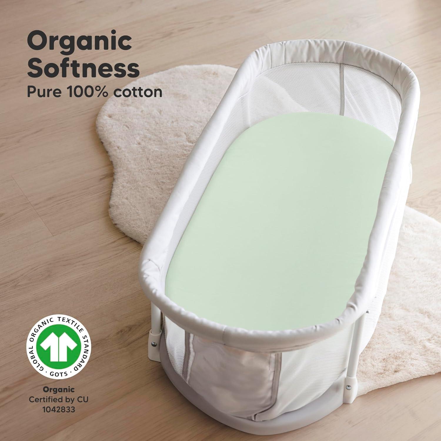 image2Pack Organic Bassinet Sheets for Girls Boys  100 Cotton Bassinet Mattress Sheets Compatible with Halo Bassinest Swivel Sleeper GracoBaby DelightChiccoUnisex Fitted Bassinet Sheets SavannahSage