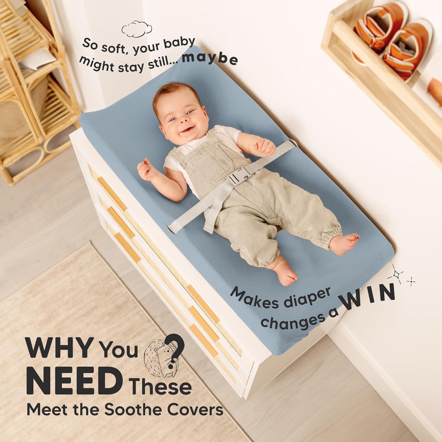 Ultra Softness – Made from 100% organic cotton (GOTS-Certified CU 1042833), our Soothe Changing Pad Covers are softer than muslin, more breathable, & gentle on baby’s skin, providing a soothing experience on the changing table during diaper changes.