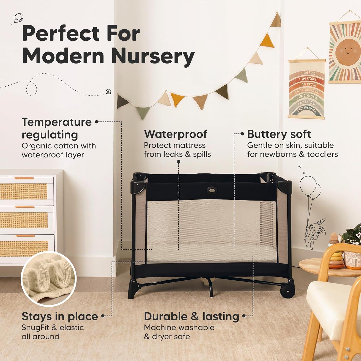 Easy To Put On – Our mini waterproof crib sheet uses SnugFit Tech, a smart fabric knit that allows the fabric to stretch when you are fitting or removing the mini crib sheets neutral from the toddler crib. No more struggling with rigid fabric!