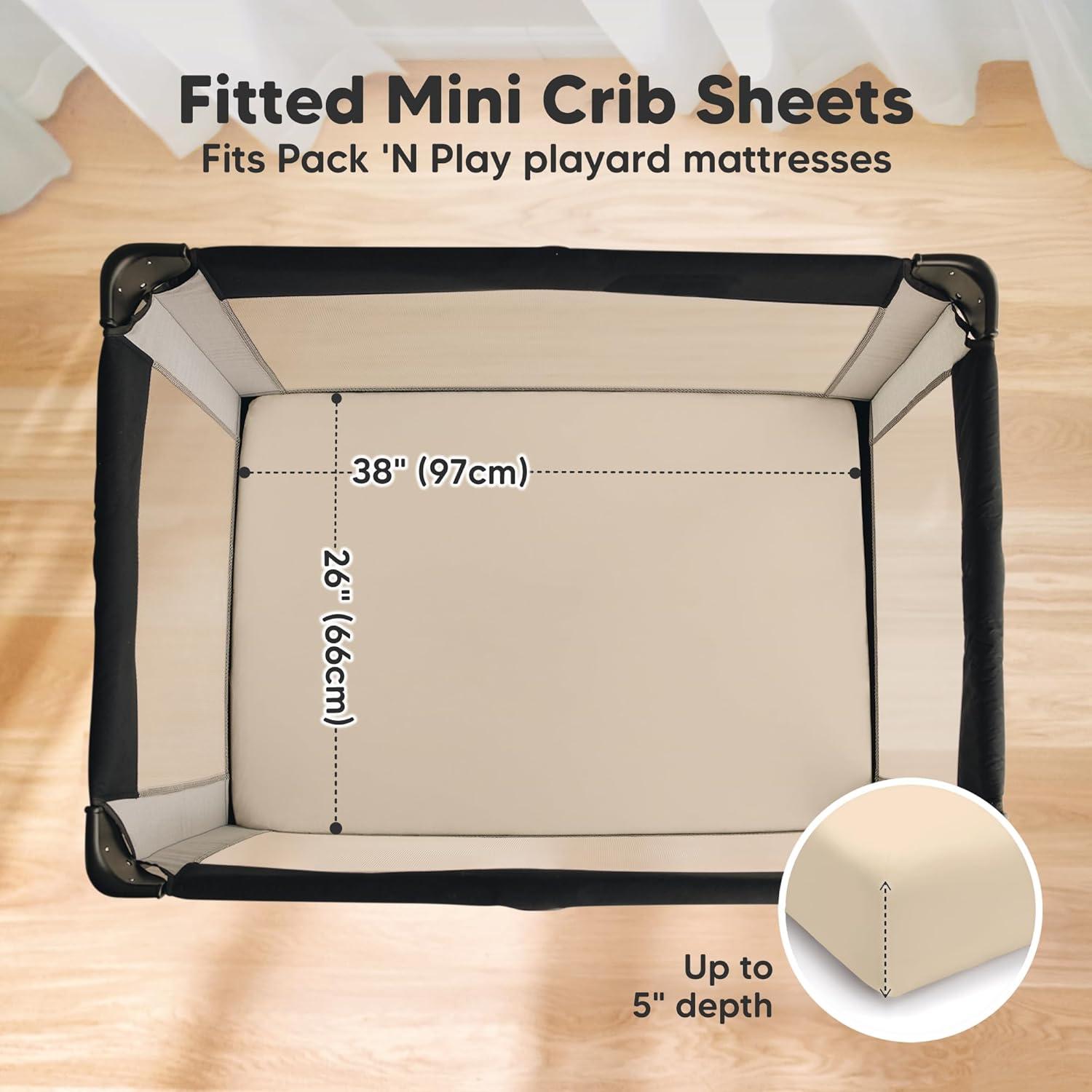 2-Pack Pack and Play Sheets – Each KeaBabies Soothe Protect+ Mini Fitted Crib Sheet set comes with two waterproof playard sheets for both boy and girl that can perfectly fit the standard Graco pack n play crib mattress sized at 38” x 26” up to 5”.