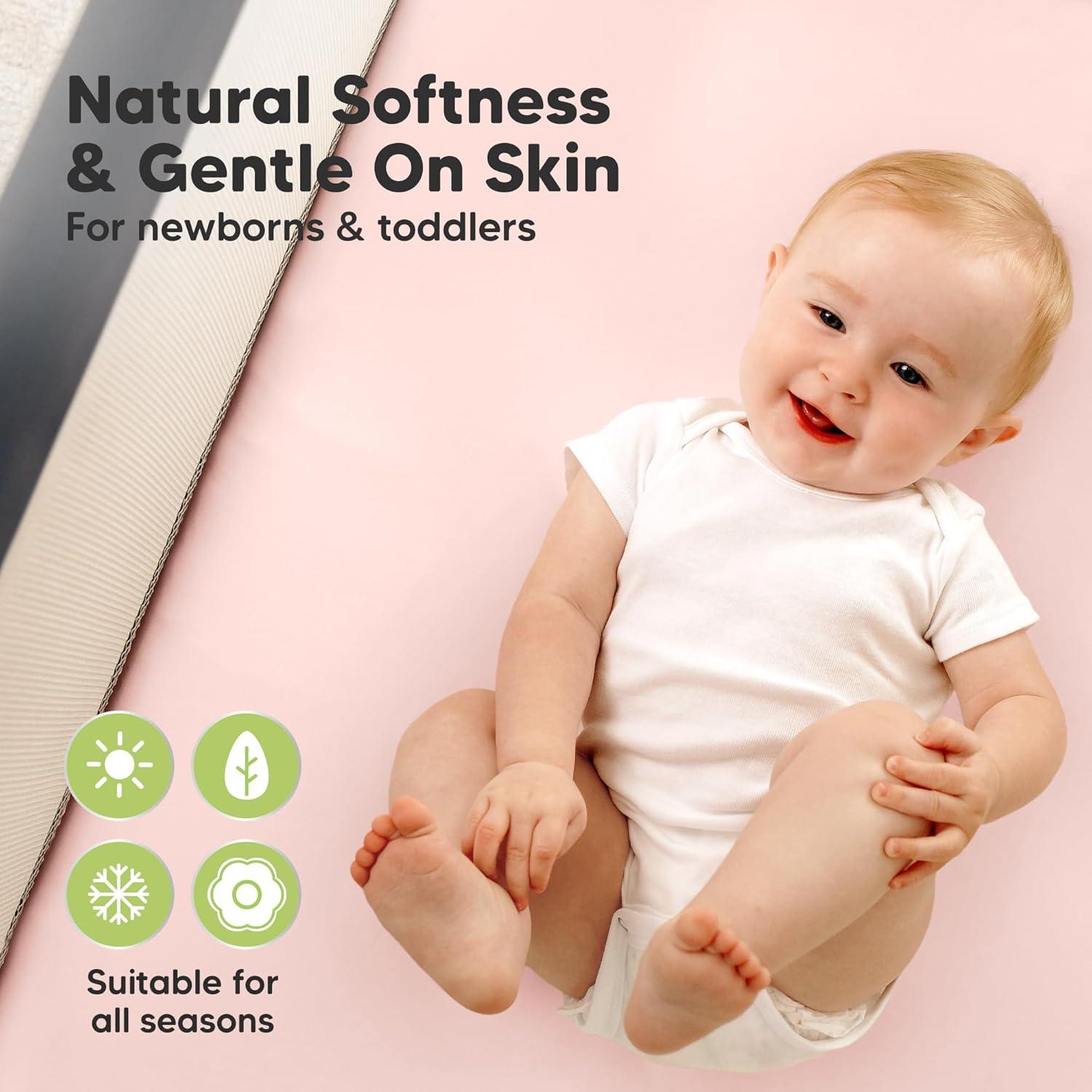Soft & Comfortable – Made of 100% cotton (GOTS organic-certified by CU 1042833), the mini crib sheets ensure maximum comfort for your baby during nap time. Our mini toddler bed sheet is suitable for all skin types including newborn's delicate skin.