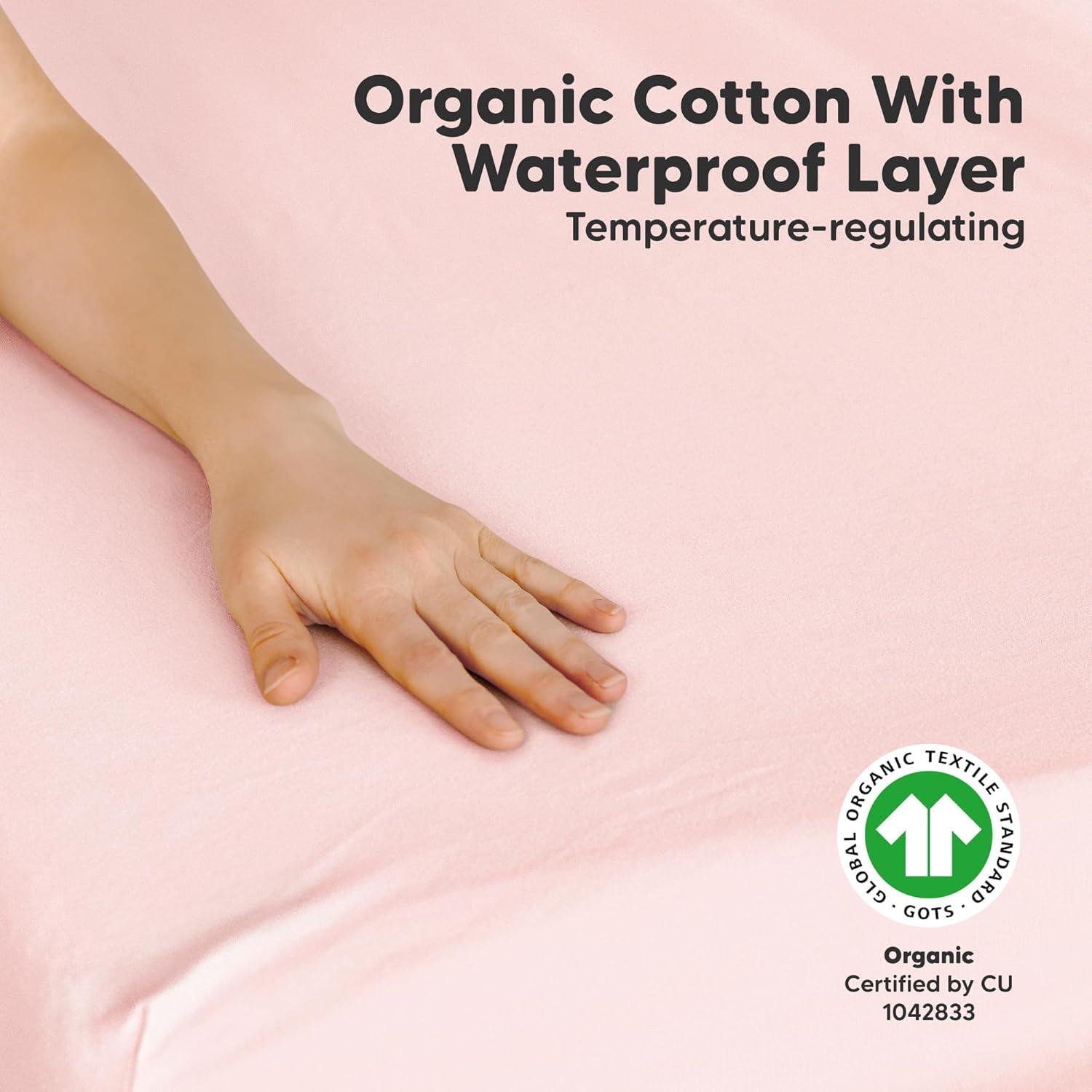 image2Pack Pack and Play Sheets Waterproof Mini Crib Sheets Fitted  Organic Cotton Pack N Play Sheets for Graco Pack and Play Mattress Playard Baby Crib Sheets Neutral for BoyGirlToddler MaritimeMist Rose