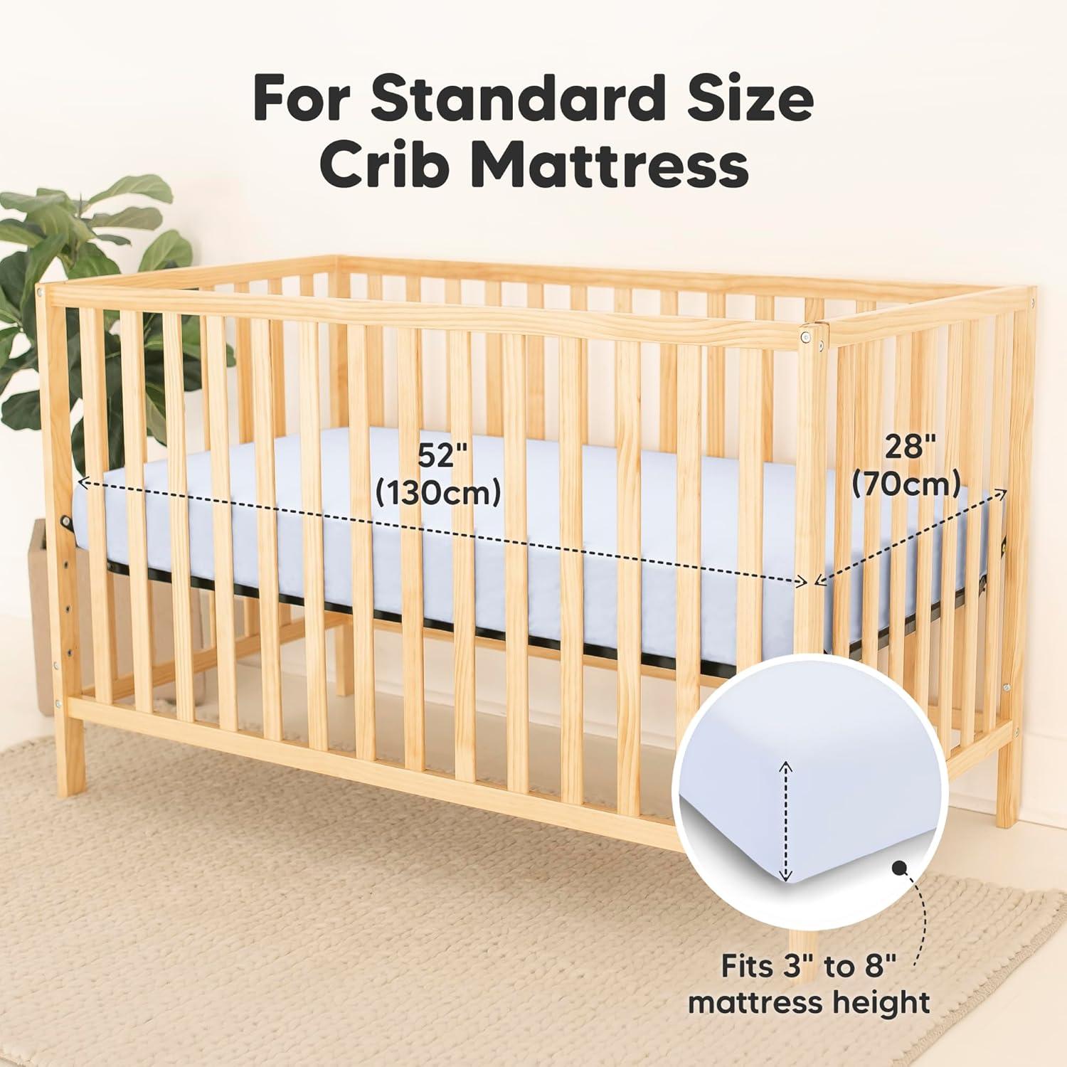 Temperature-regulating – So soft and cool-to-touch, these temperature-regulating baby crib sheets neutral provide undeniable comfort for all seasons and never disappoint. They fit standard-size crib mattresses 52″x28″ (3″-8″ height).