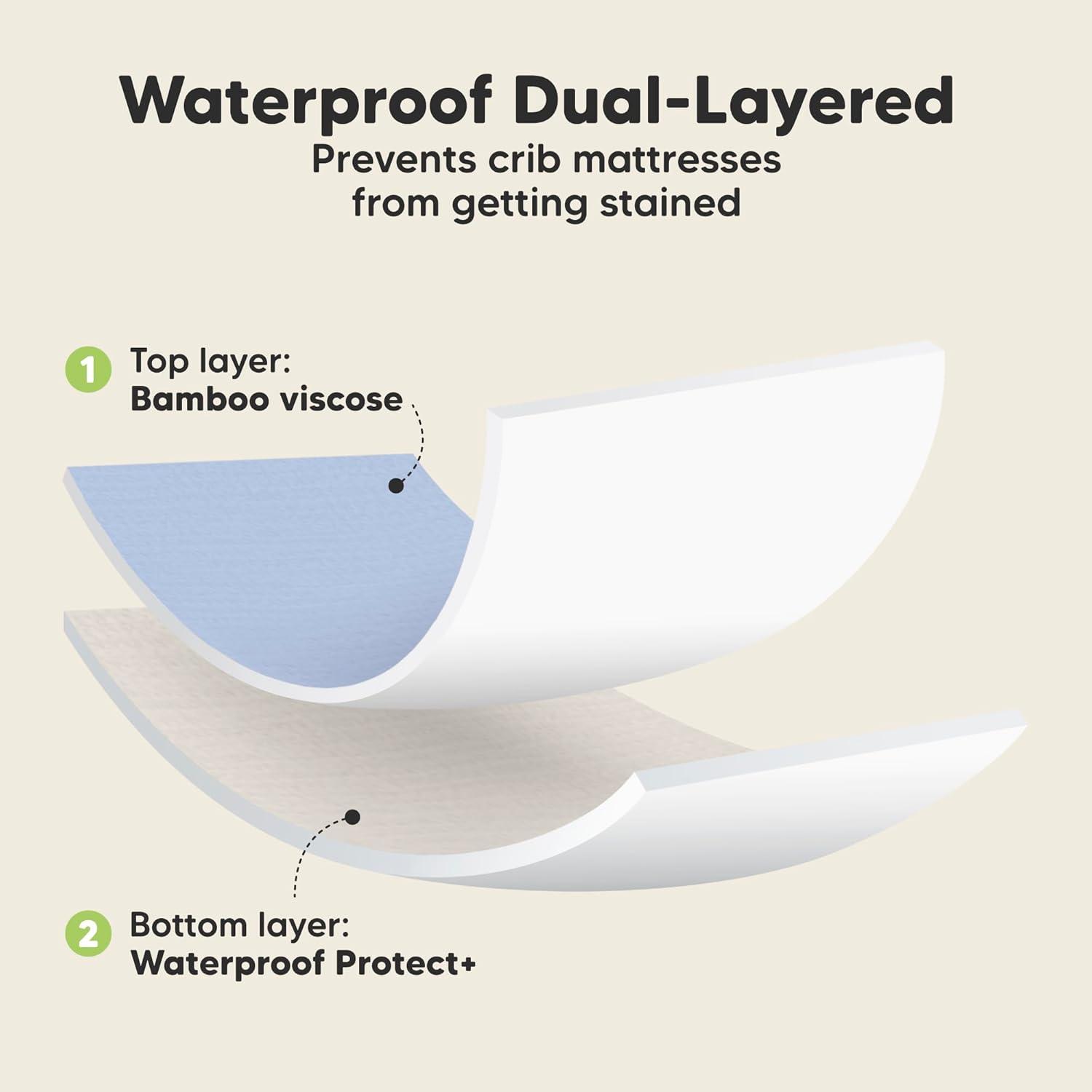 Quality Doubled Down – Double-layered, double-stitched, and double the value. These machine-washable, dryable waterproof crib sheets offer lasting, reliable protection for your baby's crib mattress, giving you more time for the things that matter.