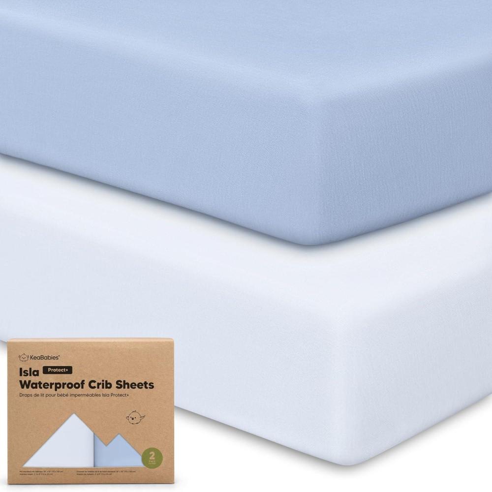 Waterproof Game Strong – The Isla Protect+ Fitted Crib Sheets feature a built-in waterproof lining that acts as a crib mattress protector, preventing stains and without the need for an extra bed cover, all without compromising on comfort.