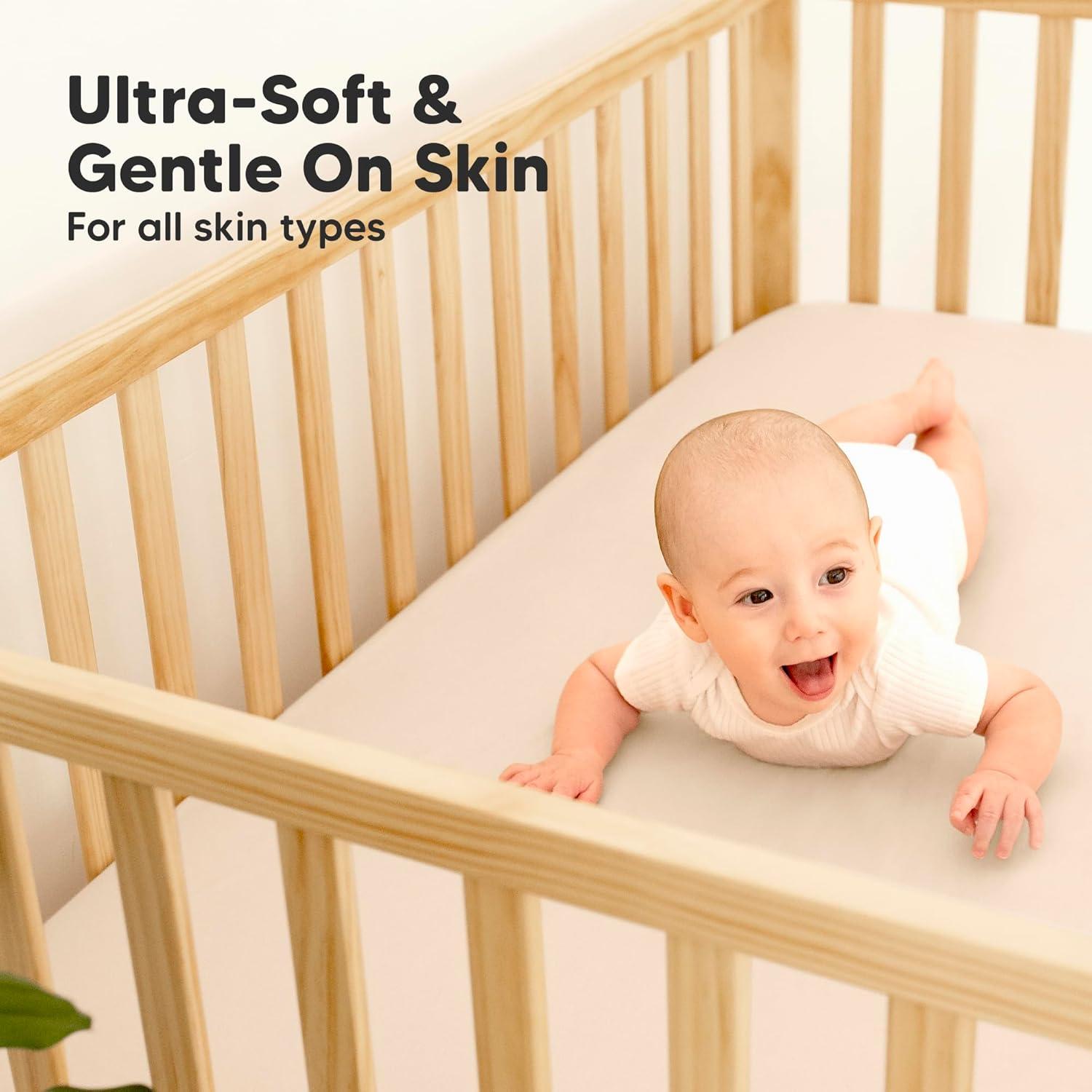Temperature-regulating – So soft and cool-to-touch, these temperature-regulating baby crib sheets neutral provide undeniable comfort for all seasons and never disappoint. They fit standard-size crib mattresses 52″x28″ (3″-8″ height).