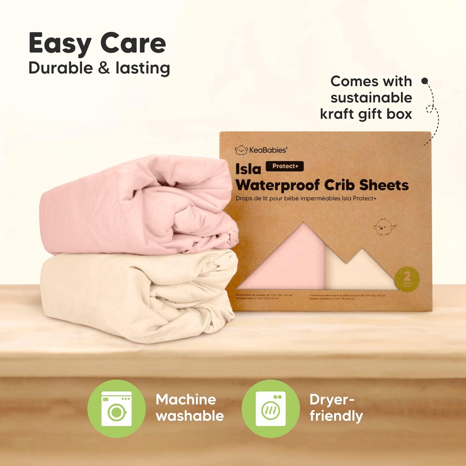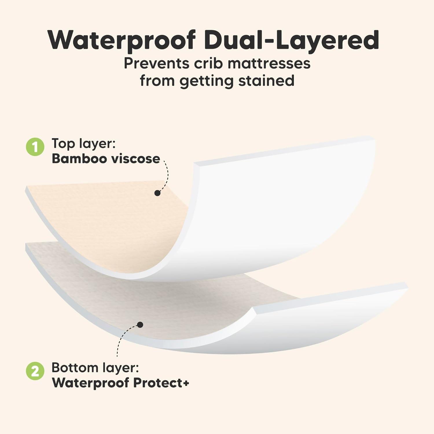 Quality Doubled Down – Double-layered, double-stitched, and double the value. These machine-washable, dryable waterproof crib sheets offer lasting, reliable protection for your baby's crib mattress, giving you more time for the things that matter.