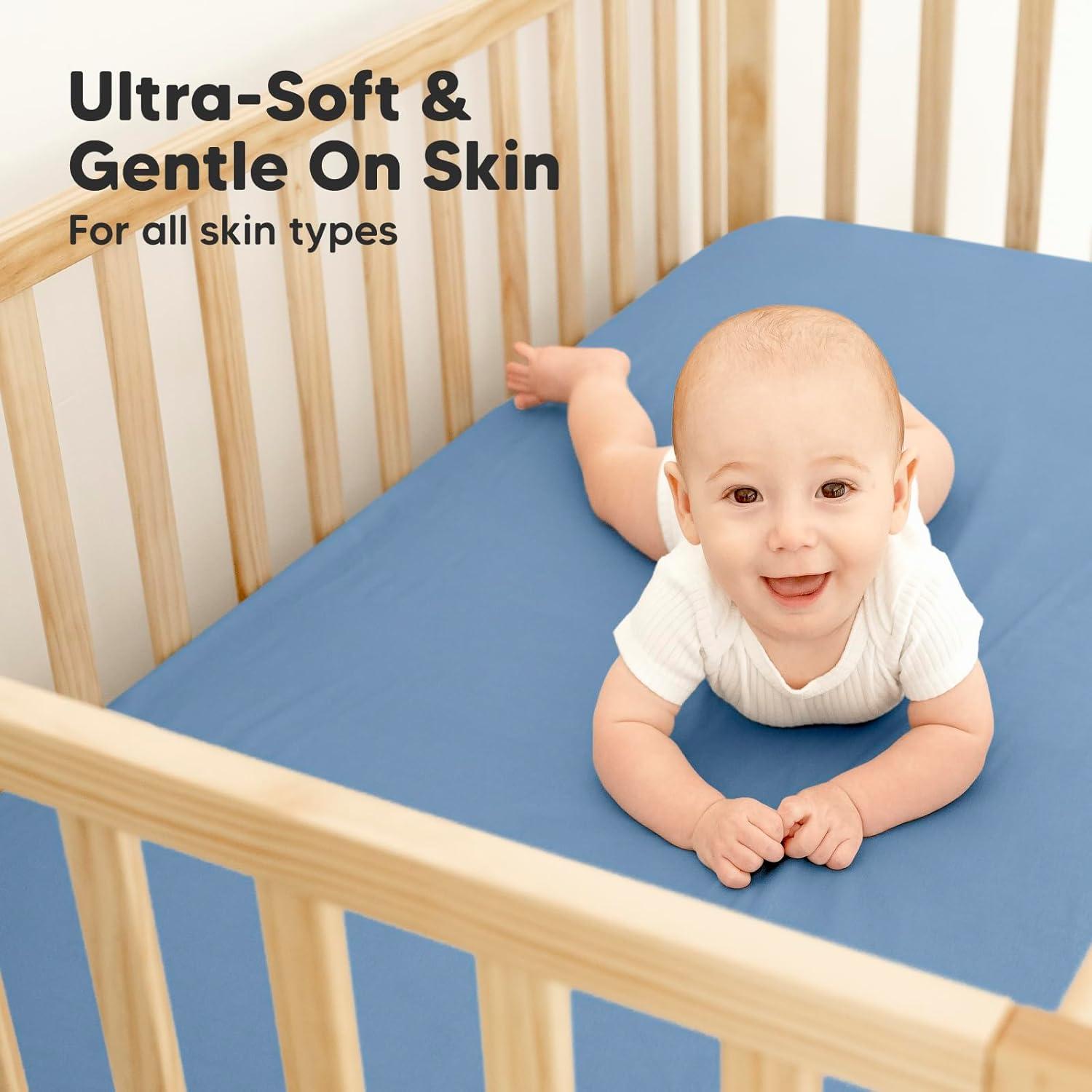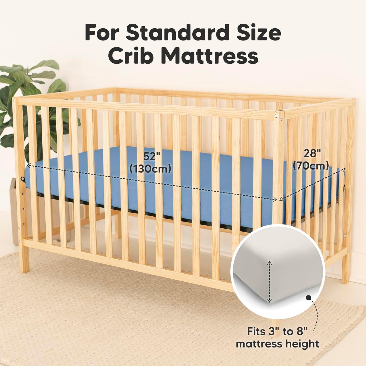 Temperature-regulating – So soft and cool-to-touch, these temperature-regulating baby crib sheets neutral provide undeniable comfort for all seasons and never disappoint. They fit standard-size crib mattresses 52″x28″ (3″-8″ height).