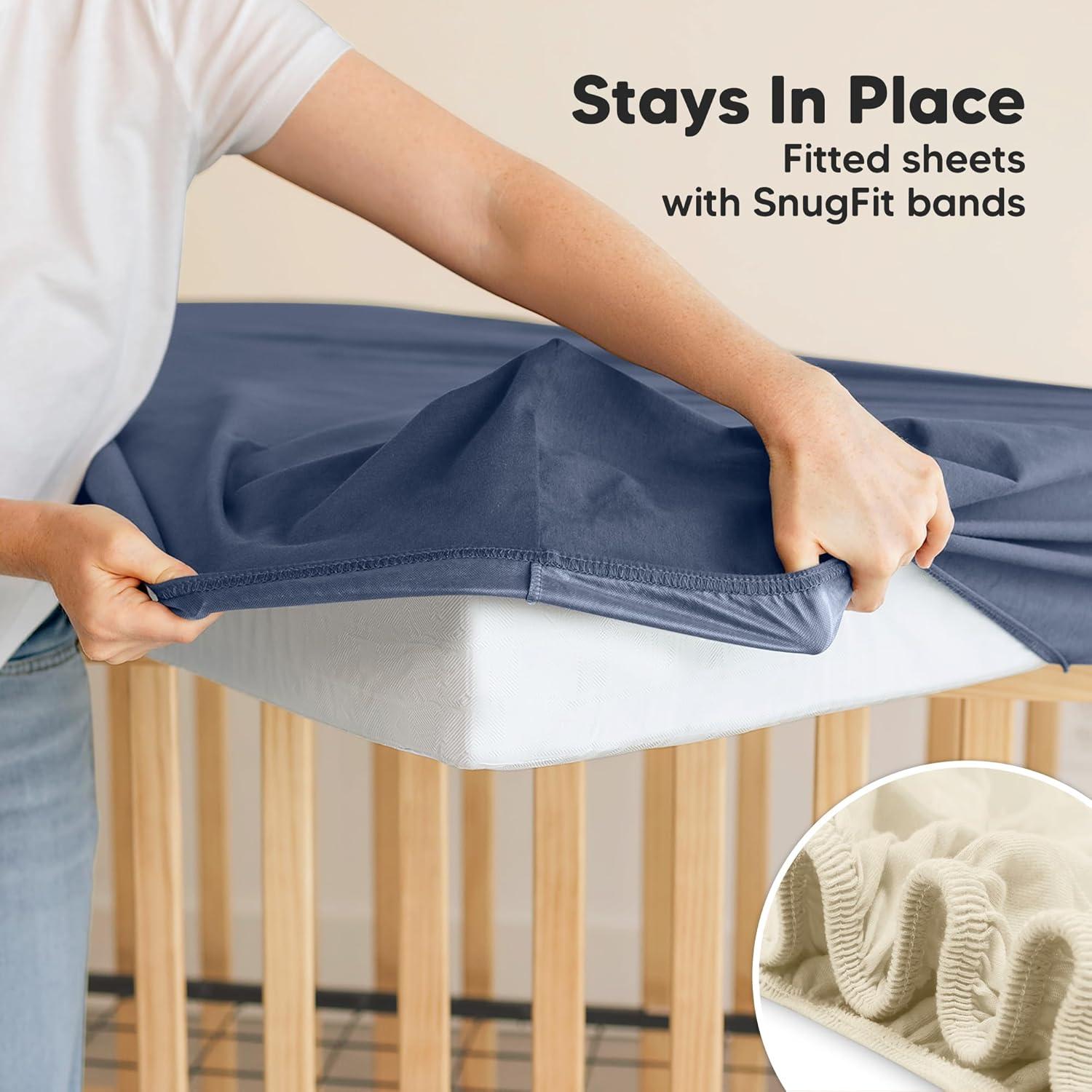 Easy To Put On – Our fitted crib sheet uses SnugFit Tech, a smart fabric knit that allows the fabric to stretch when you are fitting or removing the crib sheets neutral from the toddler crib. No more struggling with rigid fabric!
