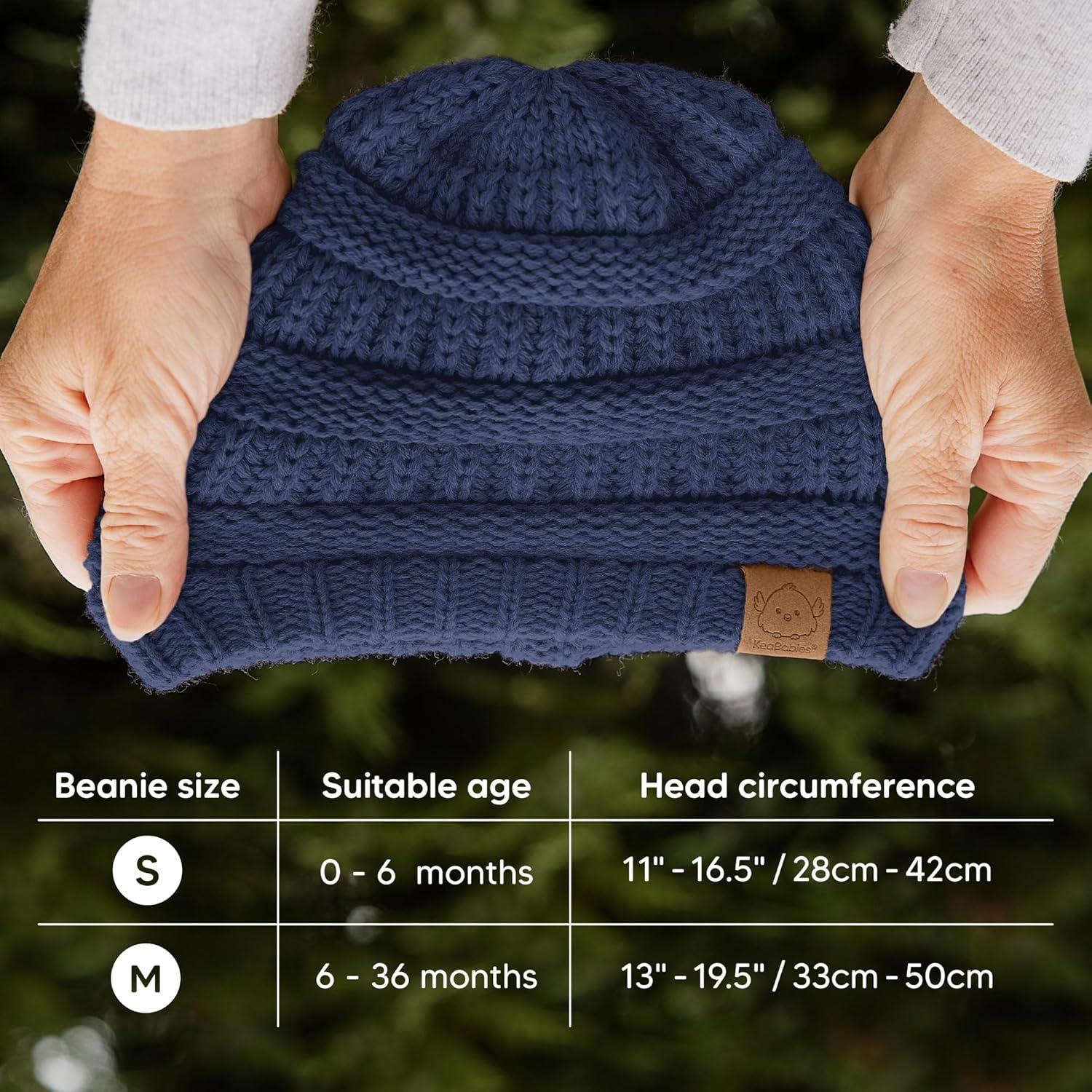 Grows with Baby – Our Warmzy Baby Beanie Hat is designed to stretch and adjust as your baby grows, ensuring a snug and comfortable fit. Size S is the perfect baby beanies for 0-6 months, while size M is ideal for babies aged 6-36 months.