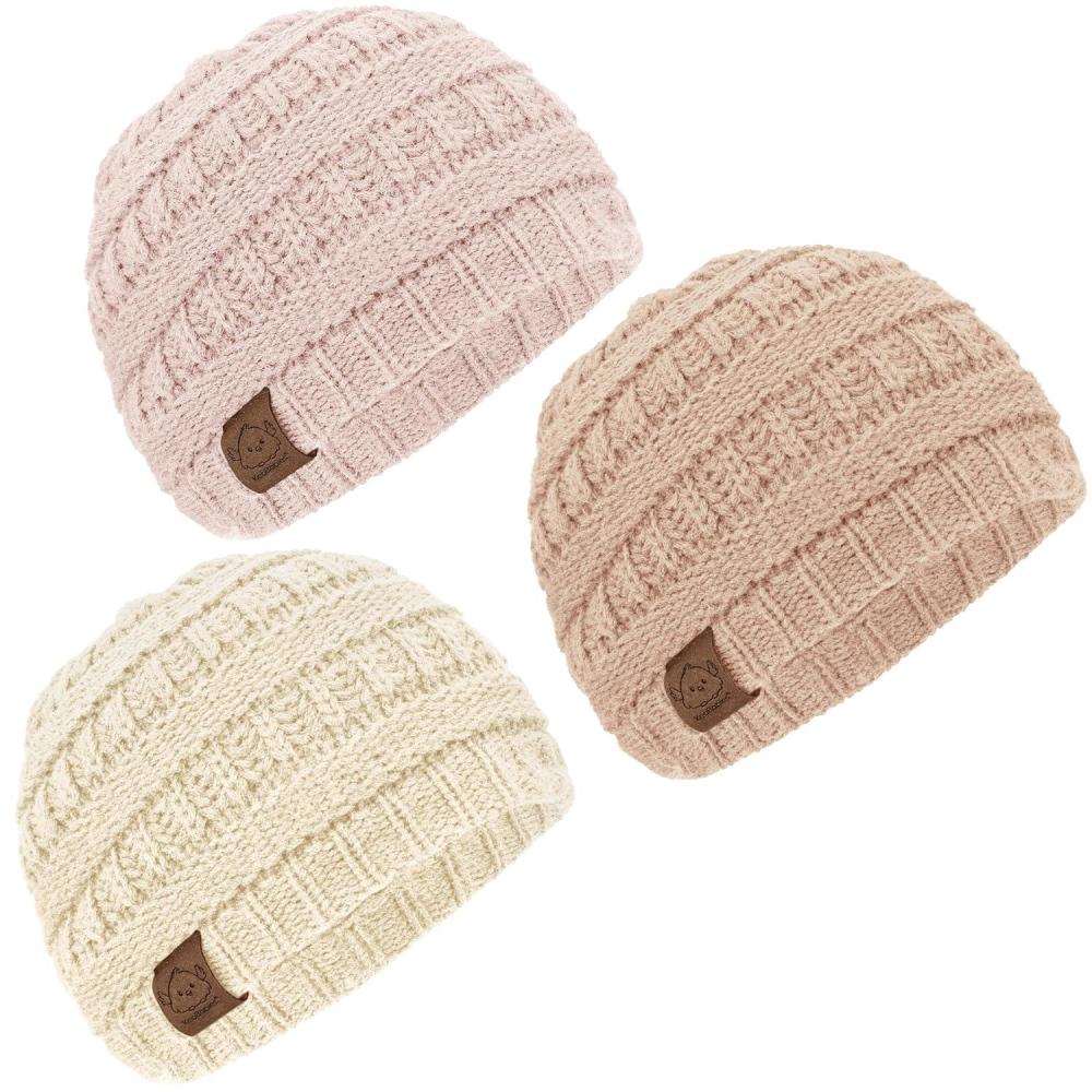 3-Pack Baby Beanies for Boys, Girls – Stretchy Knit Baby Hats, Cute Newborn & Toddler Winter Hat, Soft & Warm Infant Beanie 6-36 Months (Cloud, M)(Pale)