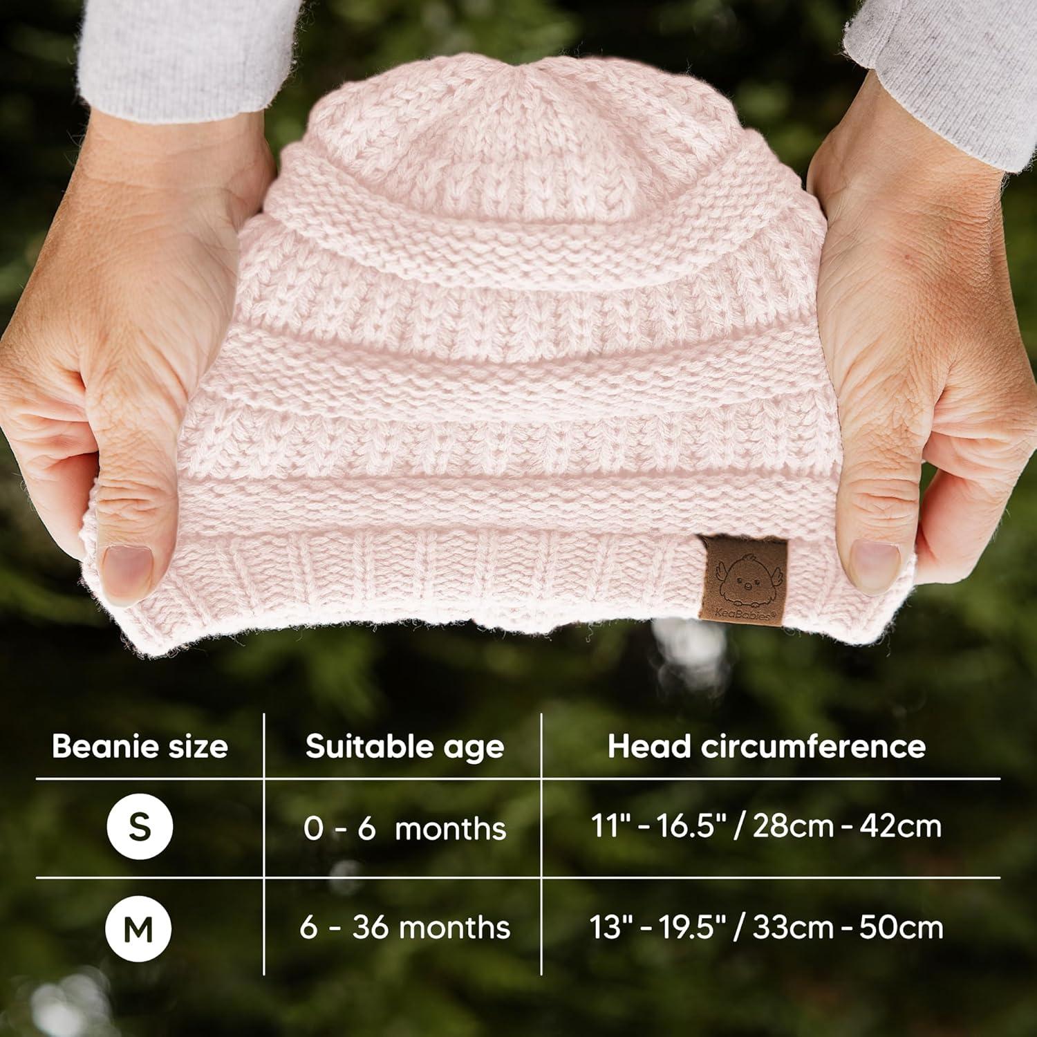 Grows with Baby – Our Warmzy Baby Beanie Hat is designed to stretch and adjust as your baby grows, ensuring a snug and comfortable fit. Size S is the perfect baby beanies for 0-6 months, while size M is ideal for babies aged 6-36 months.