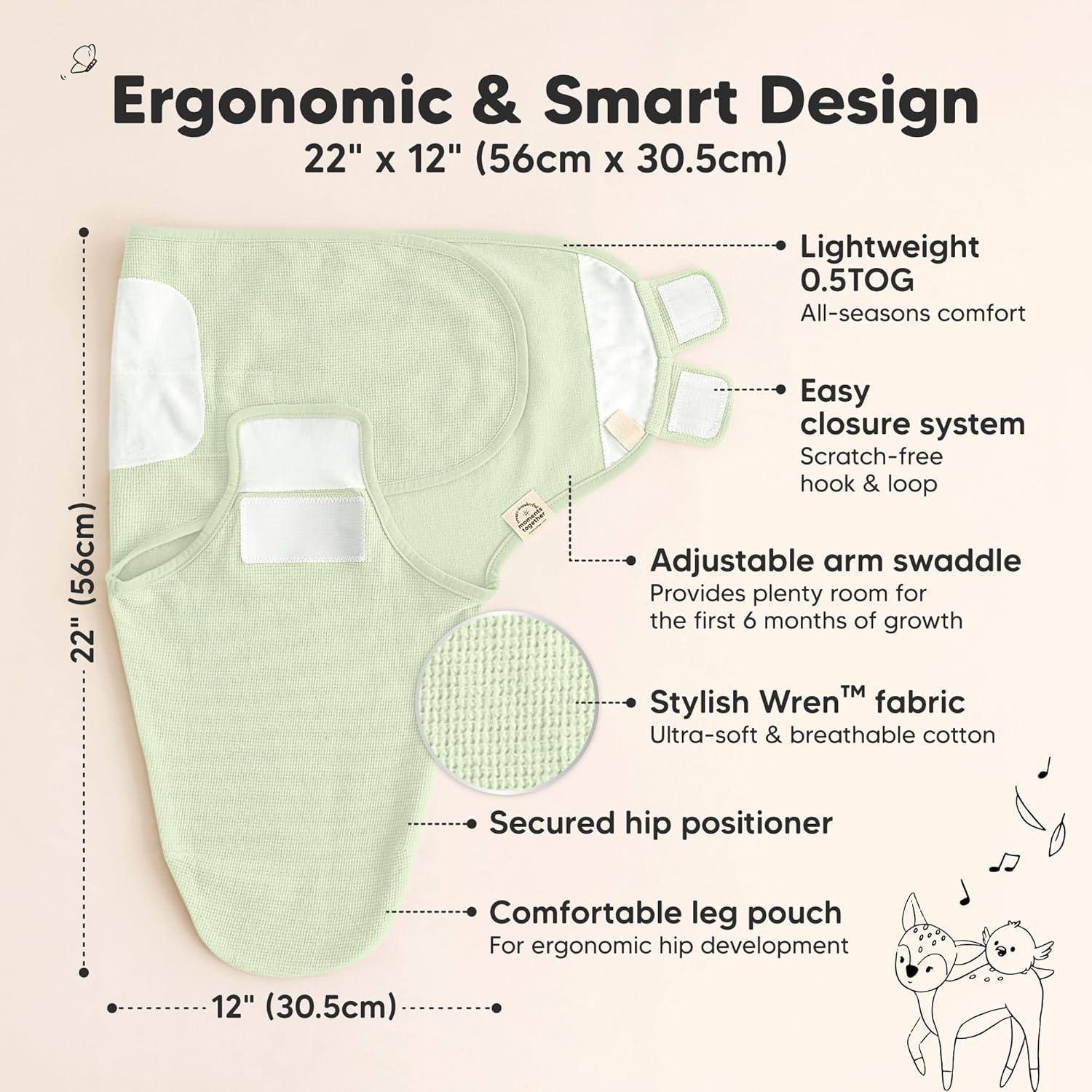 Soft & Ultra Breathable – Made from GOTS-certified organic cotton, the Wren Swaddle Sack features a waffle knit texture that’s ultra breathable and soft on the inside, gentle on your baby’s skin. Lightweight 0.5 TOG design is perfect for all seasons.