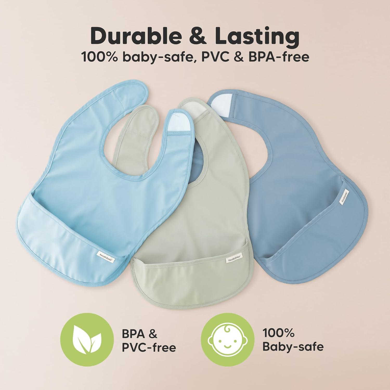 3-Pack Waterproof Baby Bibs for Eating - Lightweight Toddler Feeding Bibs with Large Food Catcher, Mess Proof, Food-Grade Baby Eating Essentials, Easy to Put On & Clean (Ocean)(Ocean)