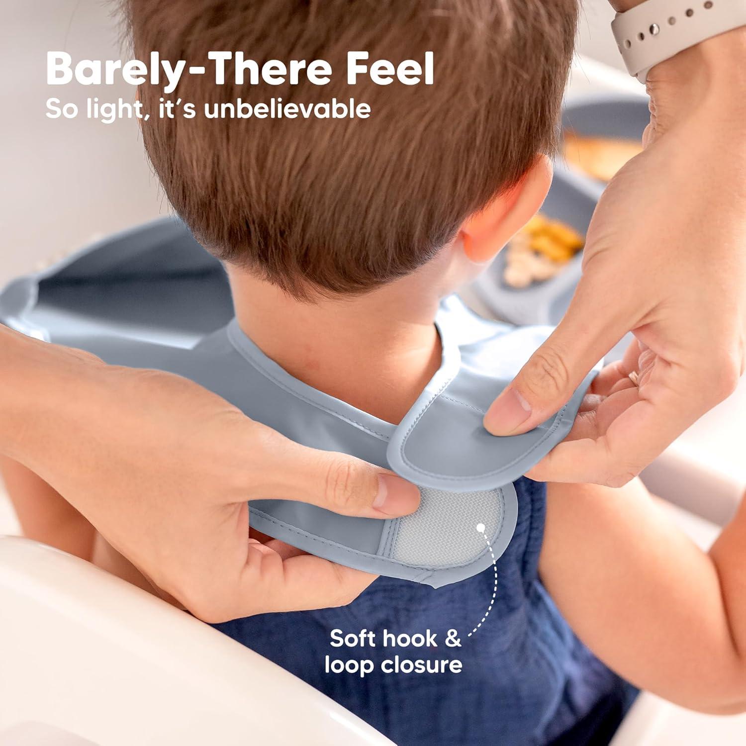 3-Pack Waterproof Baby Bibs for Eating – Lightweight Toddler Feeding Bibs with Large Food Catcher, Mess Proof, Food-Grade Baby Eating Essentials, Easy to Put On & Clean (Ocean)(Slate)