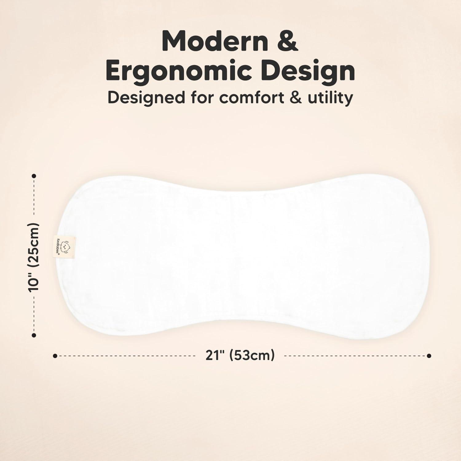 Maximum Shoulder Coverage – Our burping cloths for babies are specially designed in figure-8 to ensure a secure fit, preventing the burp rags from slipping. Measuring 21″ x 10″, this neutral burp cloth provides ample coverage for your shoulders.