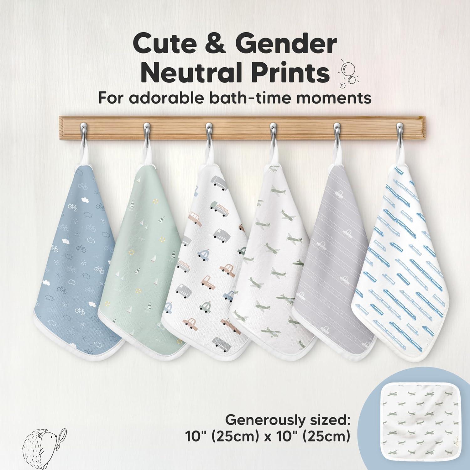6-Pack Cotton Baby Washcloths for Newborn - Organic Cotton Muslin Soft Wash Cloths for Babies, Infant, Kids, Toddler Towels for Boy, Girl, Super Absorbent Face Cloths, Scratch-Free Baby Rags (Nordic)(Vessels)