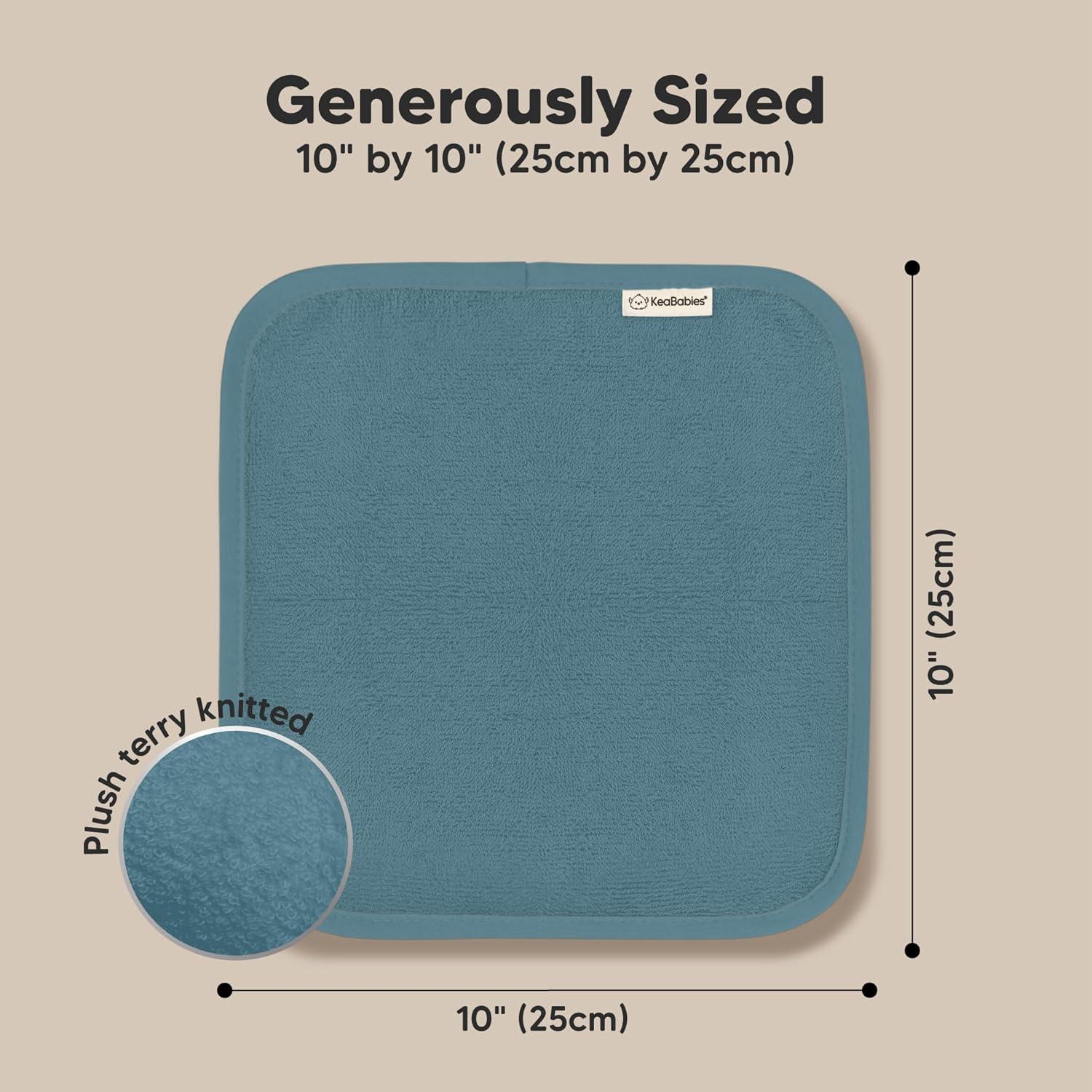 6-Pack KeaBabies Baby Wash Cloths – Sized at 10″x10″ (25x25cm), these ultra-soft, 500GSM premium viscose derived from bamboo wash cloths for babies are perfect baby bath essentials.