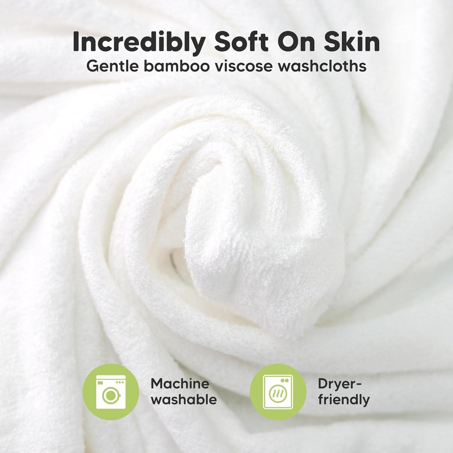 6-Pack Soft Baby Washcloths, Viscose from Bamboo - Kids, Newborn Bath Towels, Infant Shower, Toddler Reusable Face Towel, Gentle on Skin, Face Wash Cloths for Babies, 10x10 (White)(Depths)