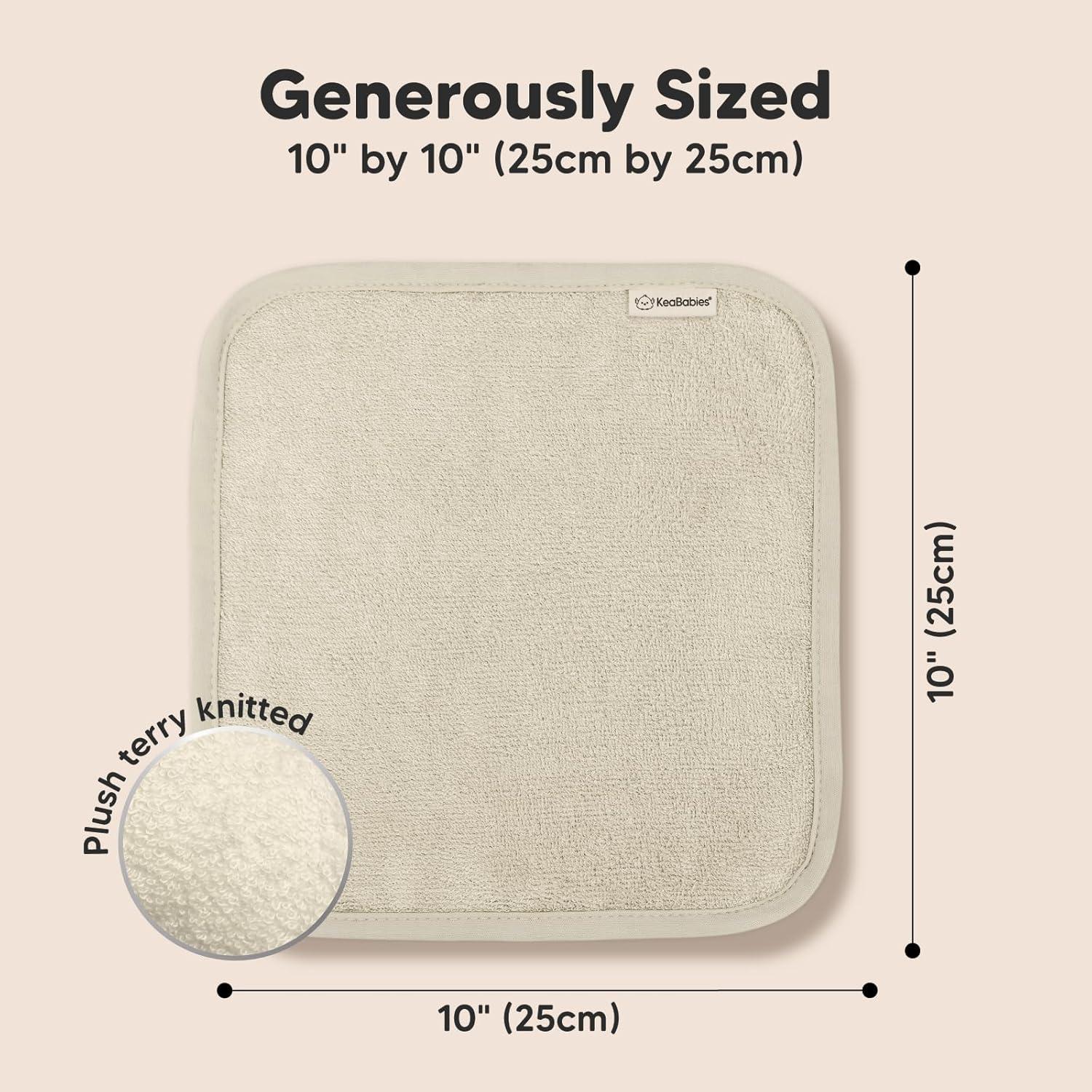 6-Pack KeaBabies Baby Wash Cloths – Sized at 10″x10″ (25x25cm), these ultra-soft, 500GSM premium viscose derived from bamboo wash cloths for babies are perfect baby bath essentials.