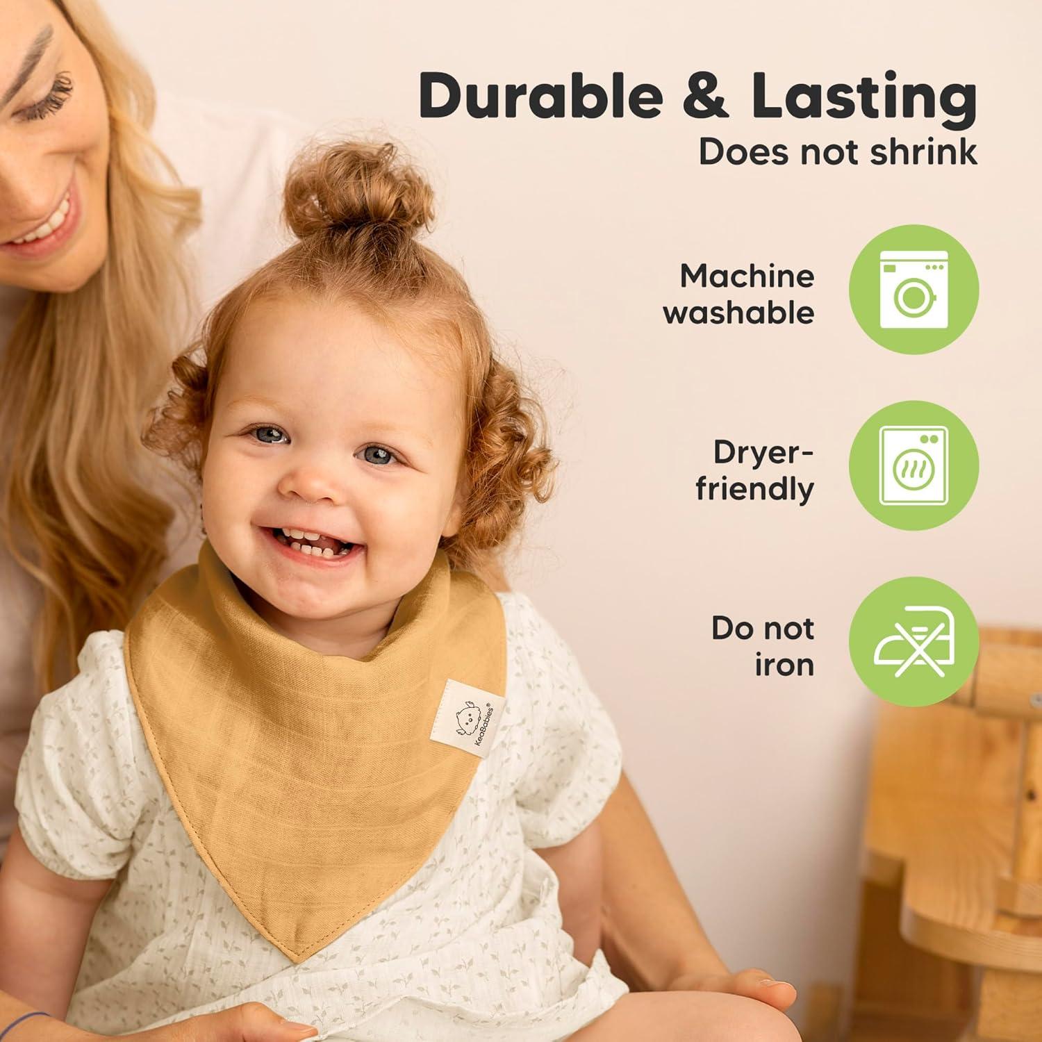 Ultra-Soft & Breathable – The Lumi Muslin Bandana Bibs are cool to the touch, gentle on all skin types, and highly breathable. These baby drool bibs prevent heat rash and discomfort, making them ideal for teething and drooling infants and toddlers.