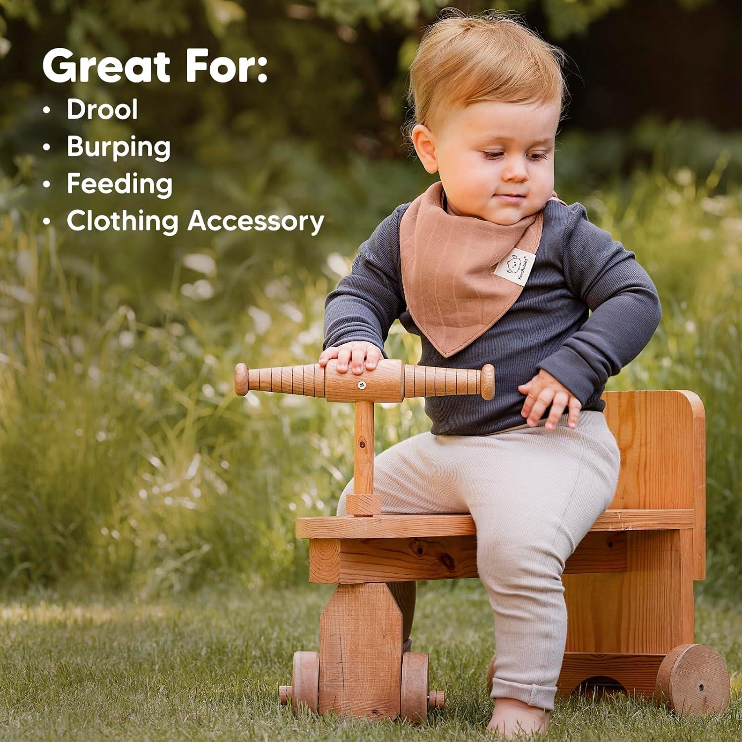 Ultra-Soft & Breathable – The Lumi Muslin Bandana Bibs are cool to the touch, gentle on all skin types, and highly breathable. These baby drool bibs prevent heat rash and discomfort, making them ideal for teething and drooling infants and toddlers.