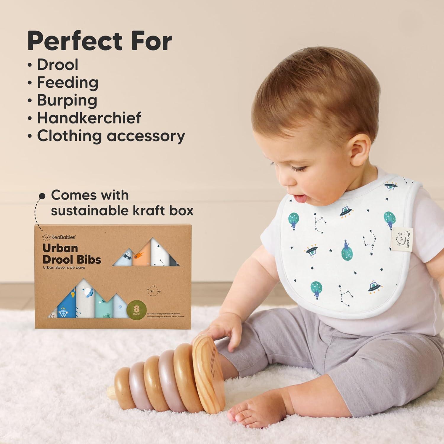 8-Pack Cute and Fun Baby Bibs for Boy and Girl – Our organic baby boy bibs and girl bibs are exclusively designed by KeaBabies to ensure that your baby never runs out of styling options. Our baby bibs are unisex and easy to match, making them a fuss-free teething baby essential.