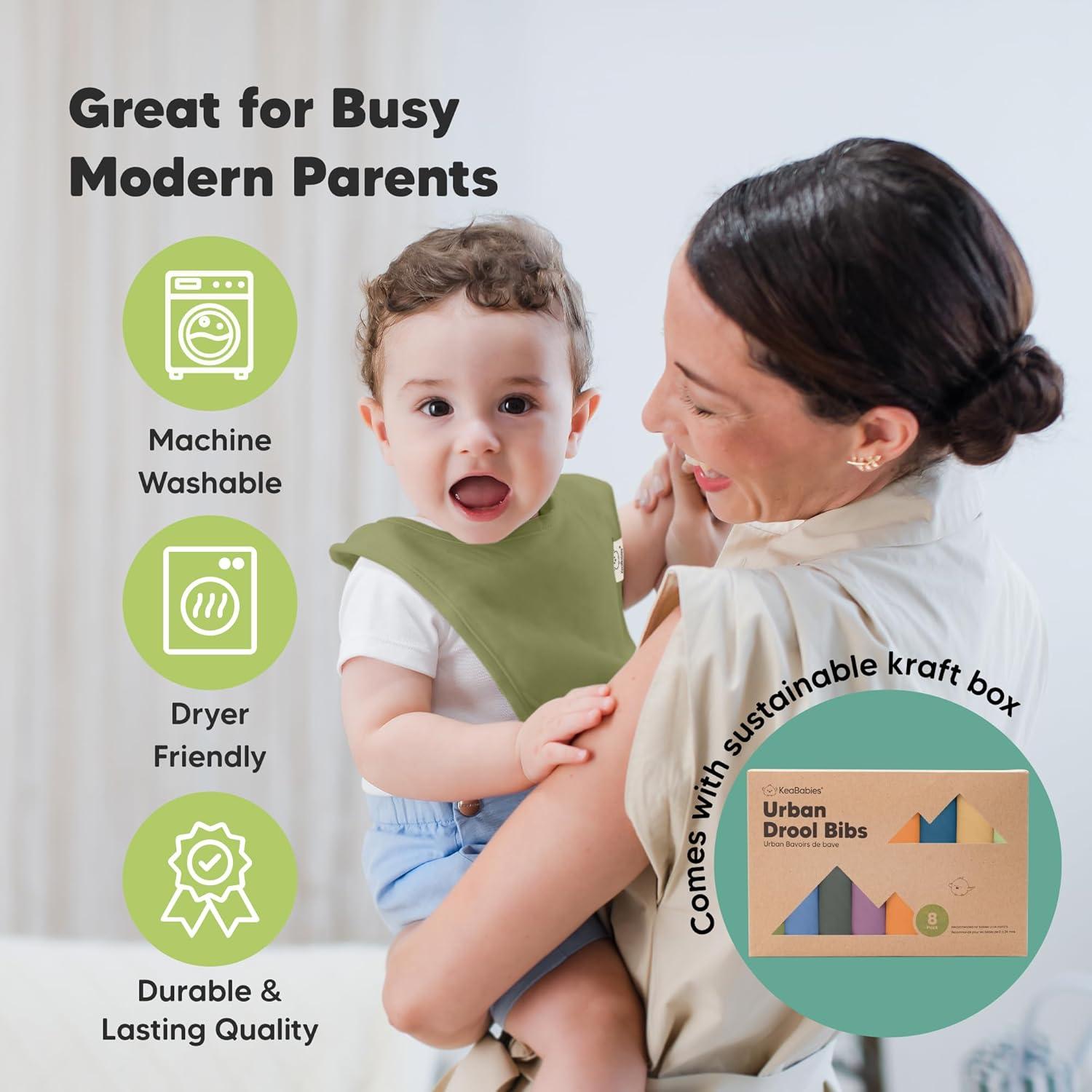 8-Pack Cute and Fun Baby Bibs for Boy and Girl – Our organic baby boy bibs and girl bibs are exclusively designed by KeaBabies to ensure that your baby never runs out of styling options. Our baby bibs are unisex and easy to match, making them a fuss-free teething baby essential.