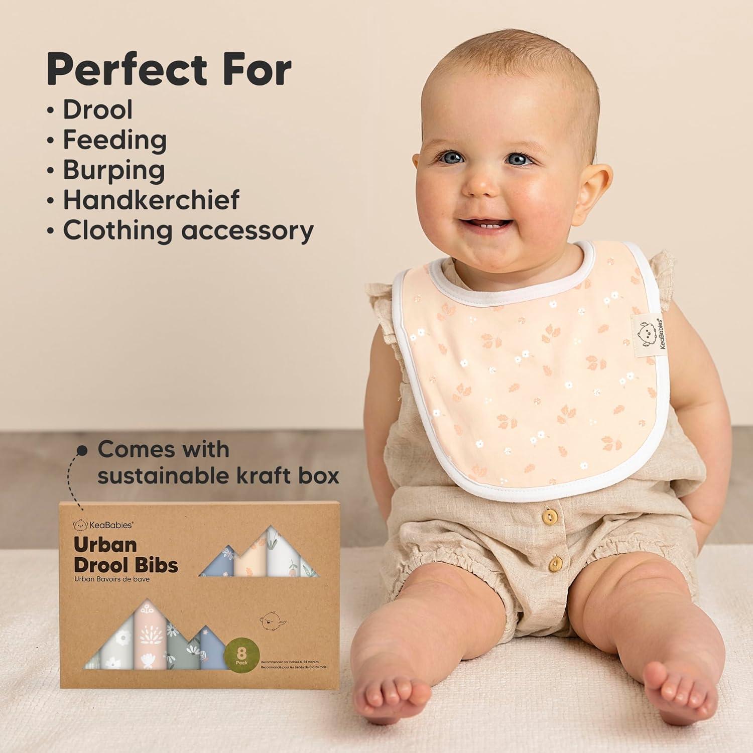 8-Pack Cute and Fun Baby Bibs for Boy and Girl – Our organic baby boy bibs and girl bibs are exclusively designed by KeaBabies to ensure that your baby never runs out of styling options. Our baby bibs are unisex and easy to match, making them a fuss-free teething baby essential.