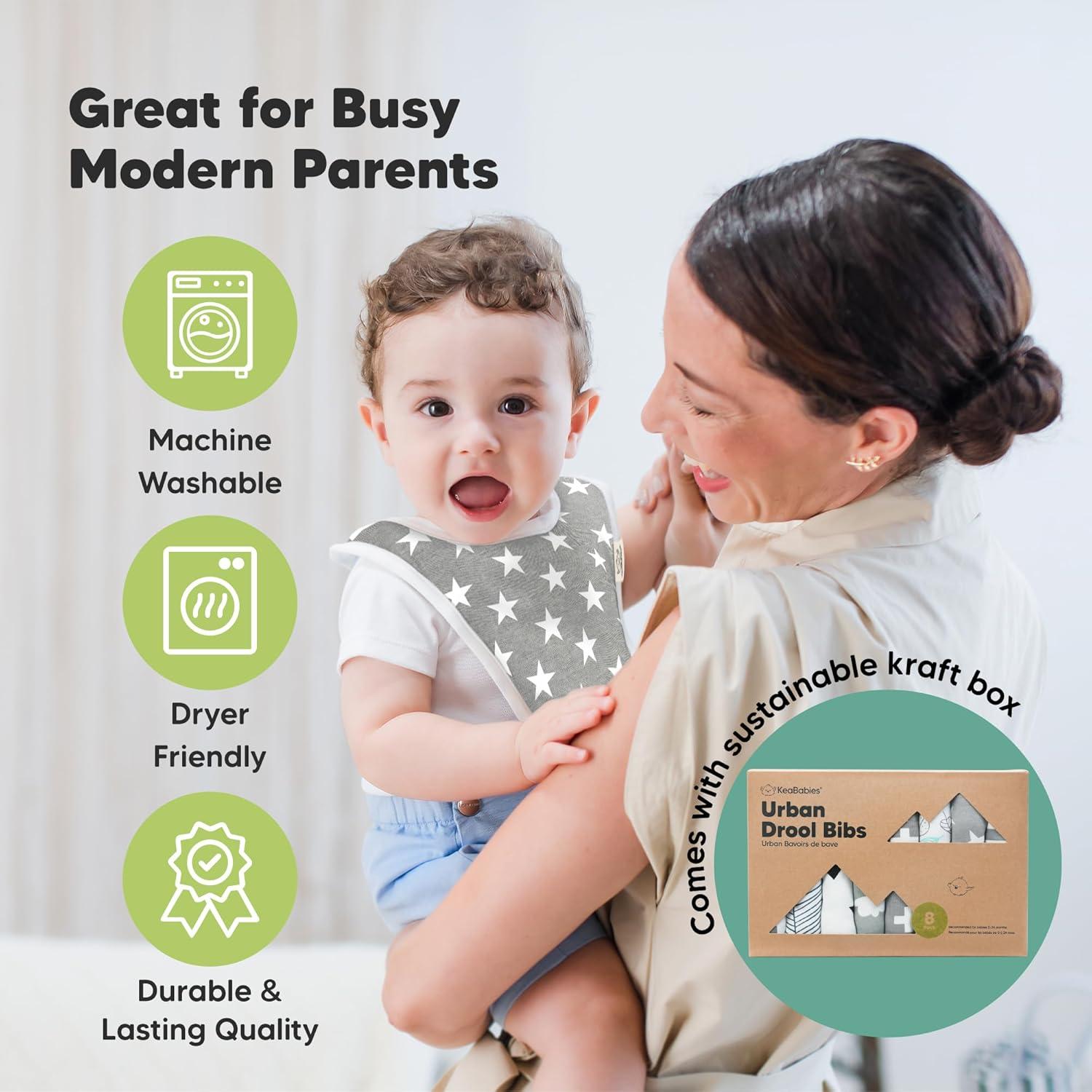 8-Pack Cute and Fun Baby Bibs for Boy and Girl – Our organic baby boy bibs and girl bibs are exclusively designed by KeaBabies to ensure that your baby never runs out of styling options. Our baby bibs are unisex and easy to match, making them a fuss-free teething baby essential.
