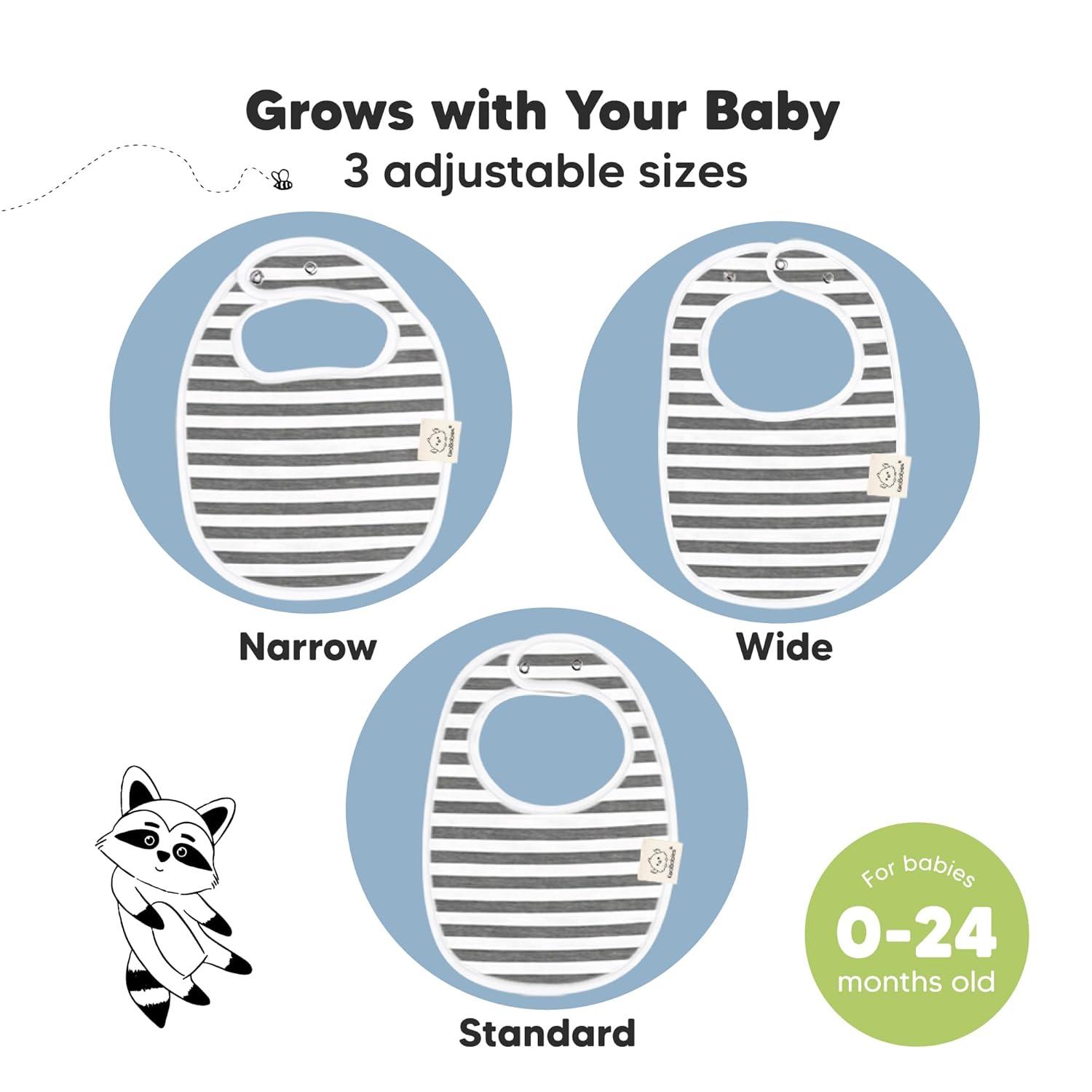 3 Adjustable Size With Soft Seams – With 2 sets of easily fasten nickel free snaps, you can adjust the girl and boy bibs according to your baby’s neckline. The soft wrapped organic cotton seams provide extra comfort for your baby and they won’t feel a thing while having the baby cotton bibs on. Suitable for newborn babies up to 24 months.