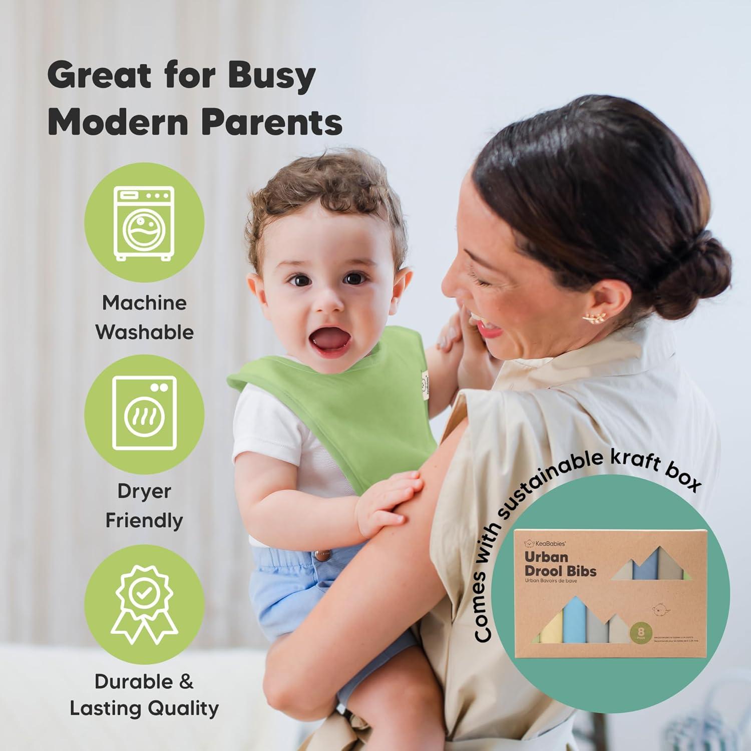 8-Pack Cute and Fun Baby Bibs for Boy and Girl – Our organic baby boy bibs and girl bibs are exclusively designed by KeaBabies to ensure that your baby never runs out of styling options. Our baby bibs are unisex and easy to match, making them a fuss-free teething baby essential.