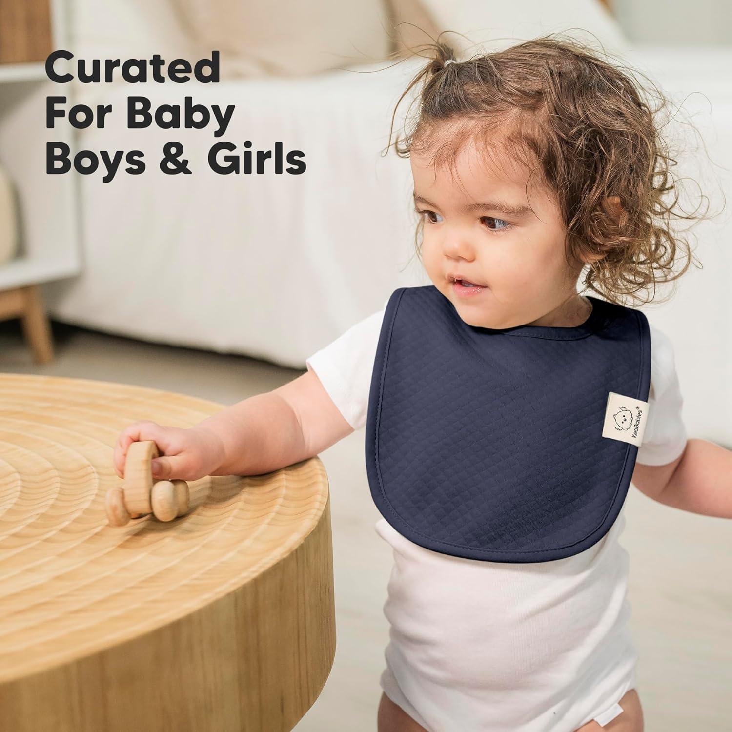 8-Pack Organic Baby Bibs for Girls, Boys – Quilted Cotton Cloth Baby Drool Bibs for Drooling and Teething Toddler, Newborn, Infant, Soft & Super Absorbent (Driftwood)(Eclipse)
