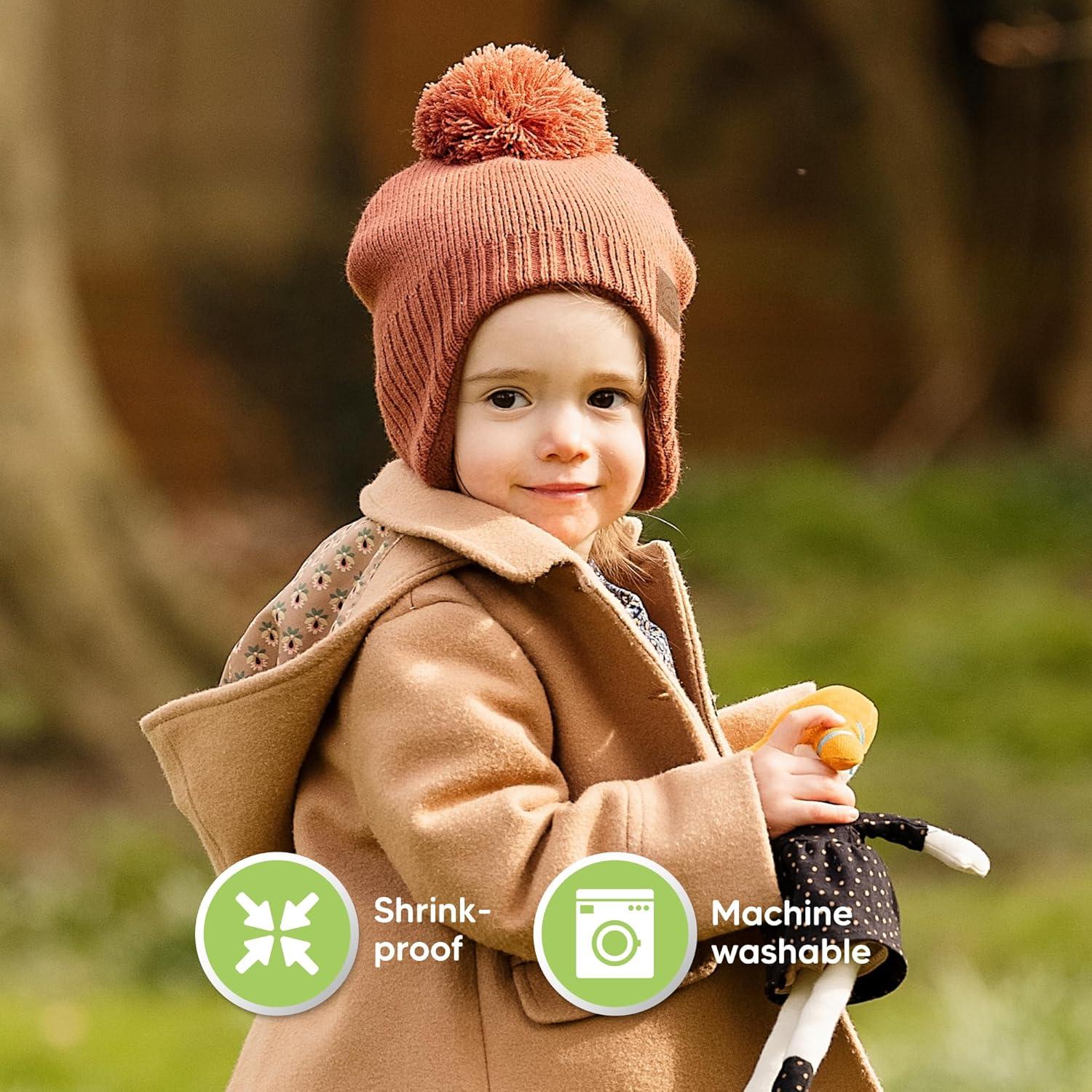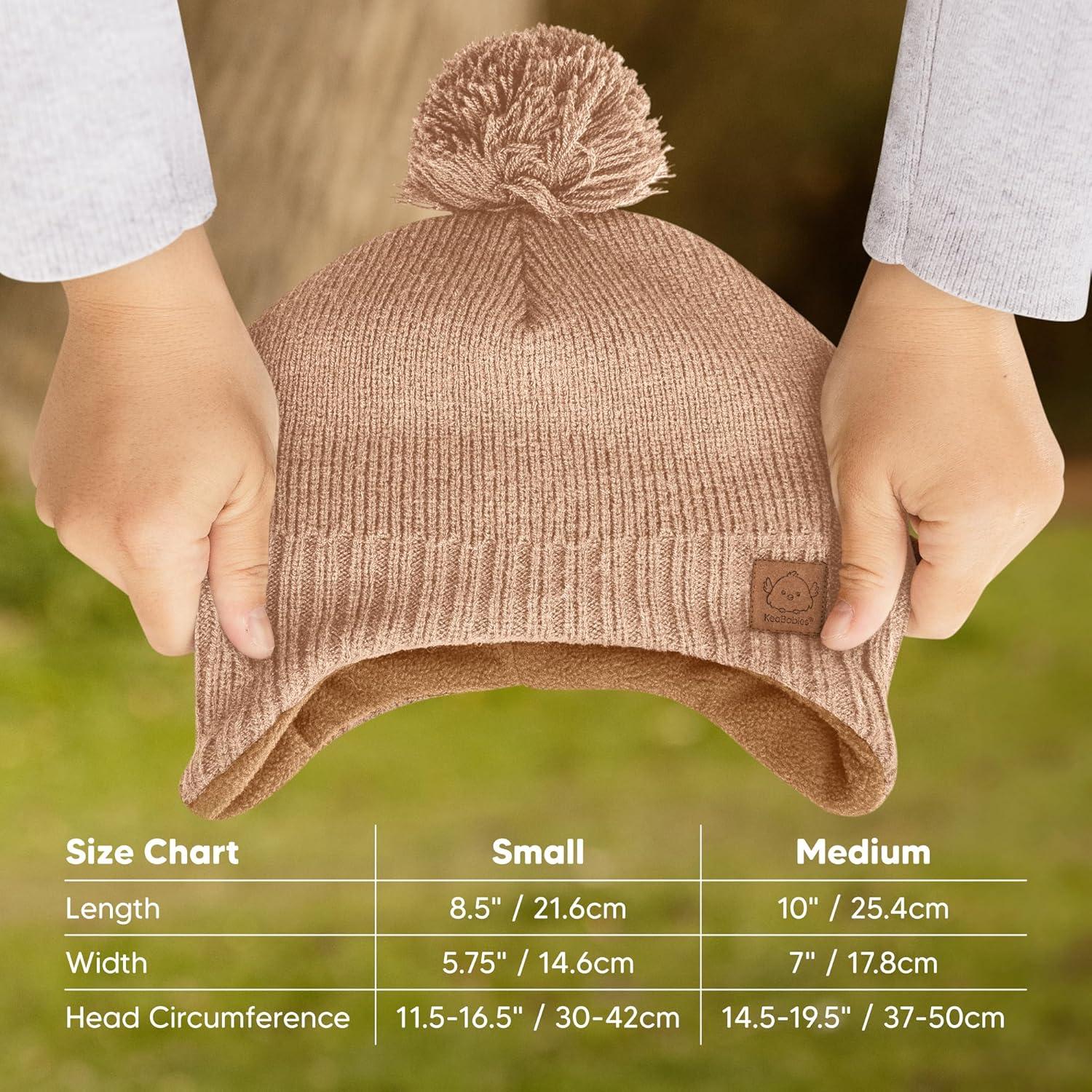 Baby Beanies, Baby Hats for Boys, Girls – Cute Toddler Winter Hat, Soft & Stretchy Beanies for Infant, Newborn 6-36 Months, Cozy & Warm with Earflap Muff & Pom (Regalia)(Dune)