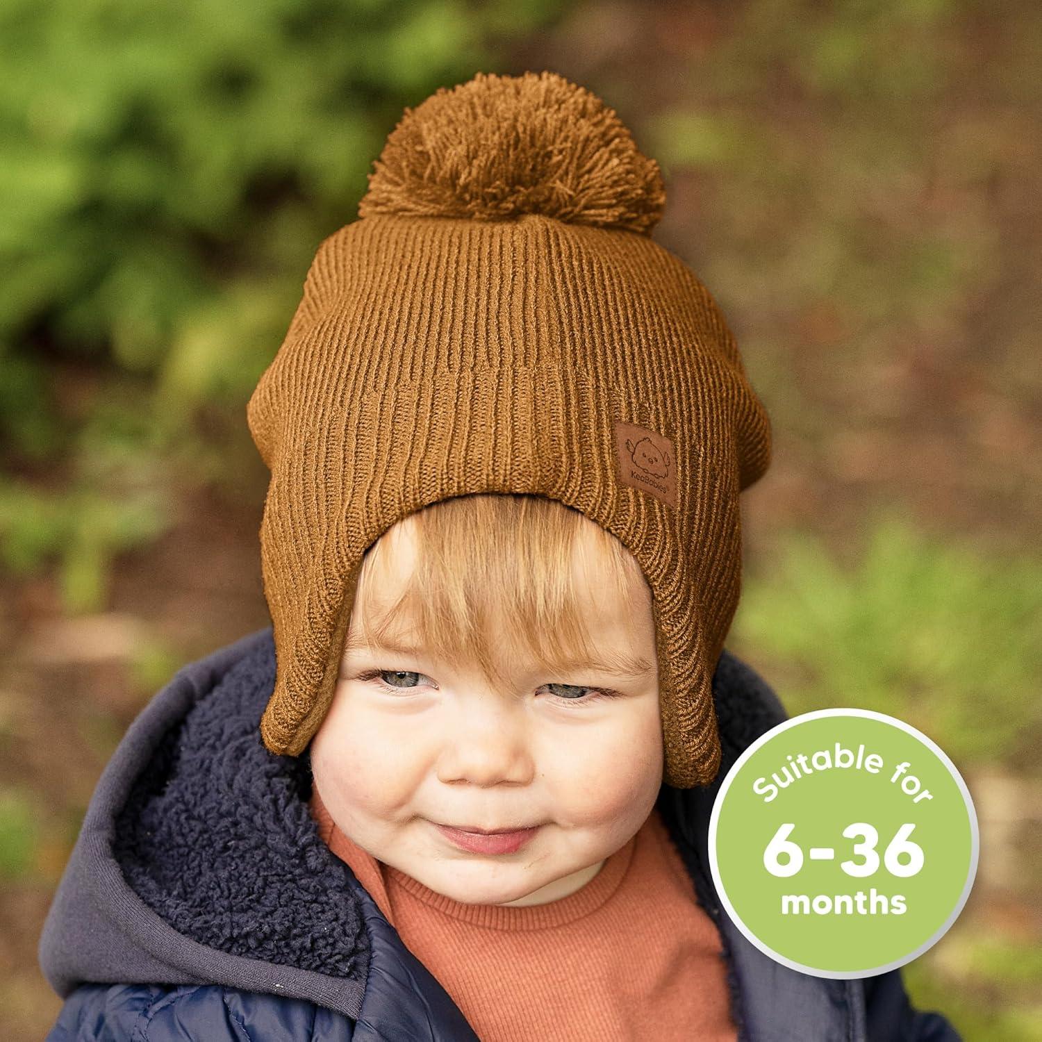Stylish and Unisex – The Muff Baby Hat Beanie is designed with a sleek ribbed knit, paired with ear-covering flaps and an adorable pom. It effortlessly enhances any winter outfit, making it a must-have baby winter hat for both baby girls and boys.