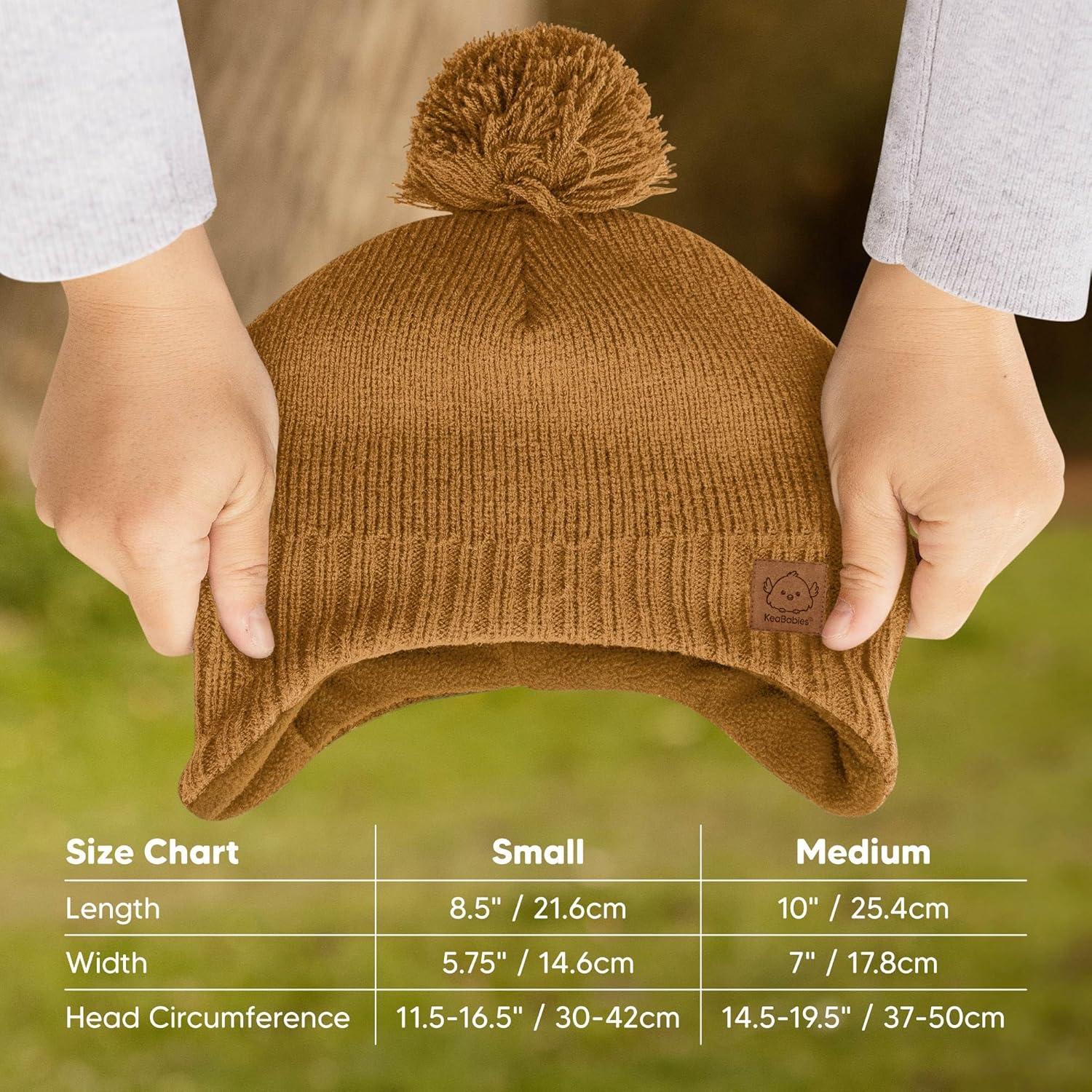 Baby Beanies, Baby Hats for Boys, Girls – Cute Toddler Winter Hat, Soft & Stretchy Beanies for Infant, Newborn 6-36 Months, Cozy & Warm with Earflap Muff & Pom (Regalia)(Latte)
