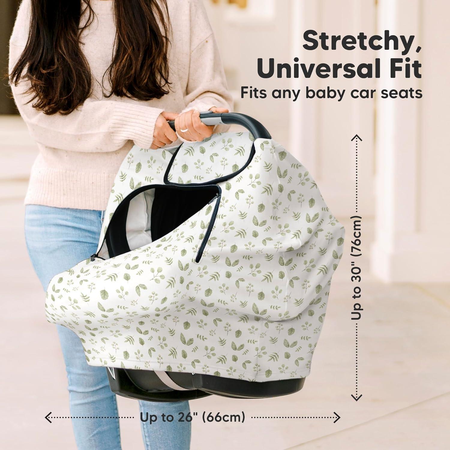 Baby Car Seat Cover for Boys, Girls – Breathable Infant Carseat Canopy for Winter, Rain, Universal Stretchy Fit Nursing Cover for Breastfeeding Newborns, Super Soft, Easy Access Zip Window (Indigo)(Laurel)