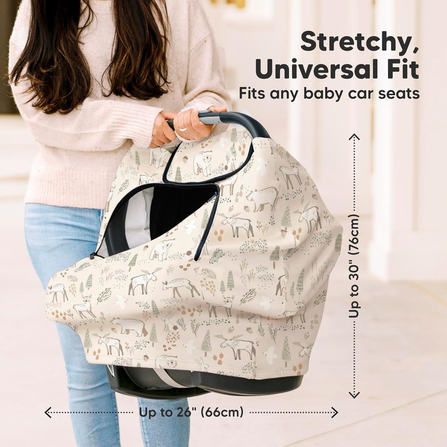 Universal Stretch-Fit – Stylish and versatile, our infant car seat cover fits most standard carseat types. Its stretchy fabric ensures a snug fit (22″x25″, stretches up to 26″x30″). Check measurements for best compatibility with your model.
