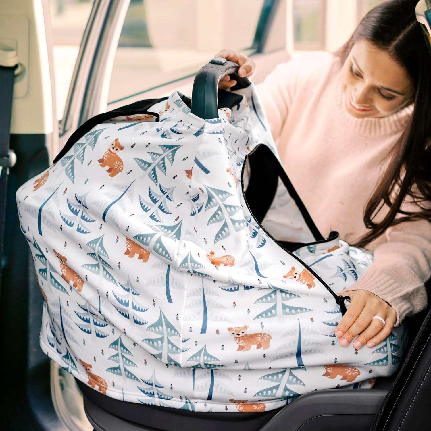 Baby Car Seat Cover for Boys, Girls – Breathable Infant Carseat Canopy for Winter, Rain, Universal Stretchy Fit Nursing Cover for Breastfeeding Newborns, Super Soft, Easy Access Zip Window (Indigo)(Wildwood)