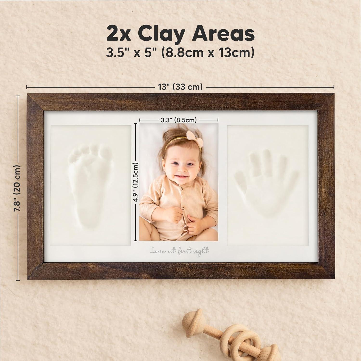 Baby Hand and Footprint Kit – Clay Handprint Keepsake Frame, Newborn Nursery Picture Frame, Personalized New Mom Gifts for Baby Shower & Registry (Alpine White)(Dark Walnut)