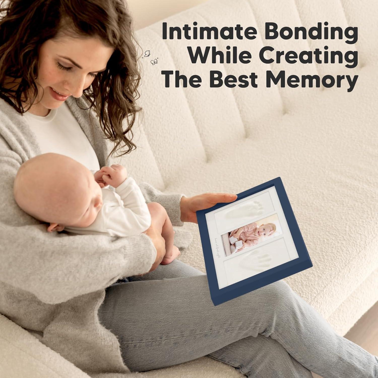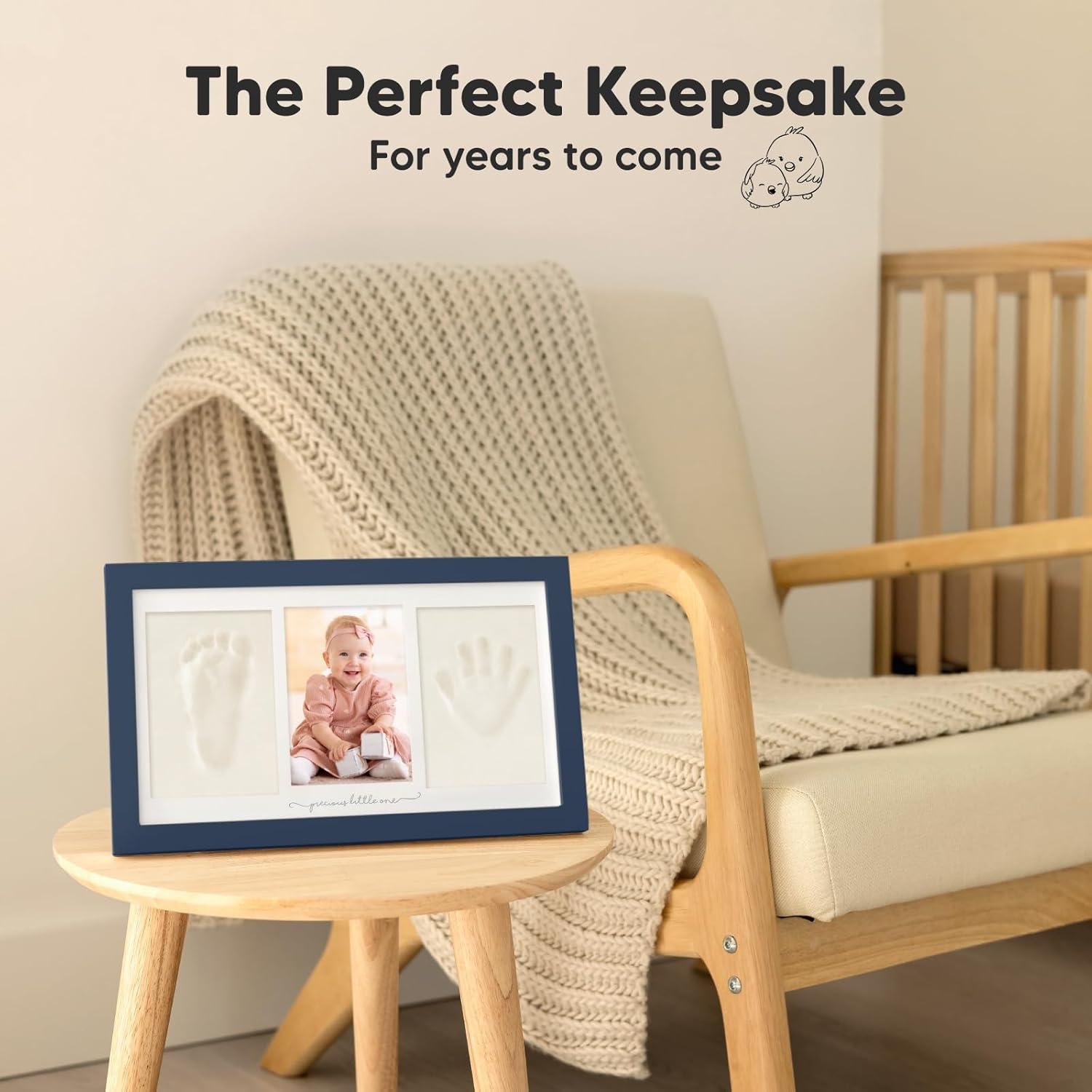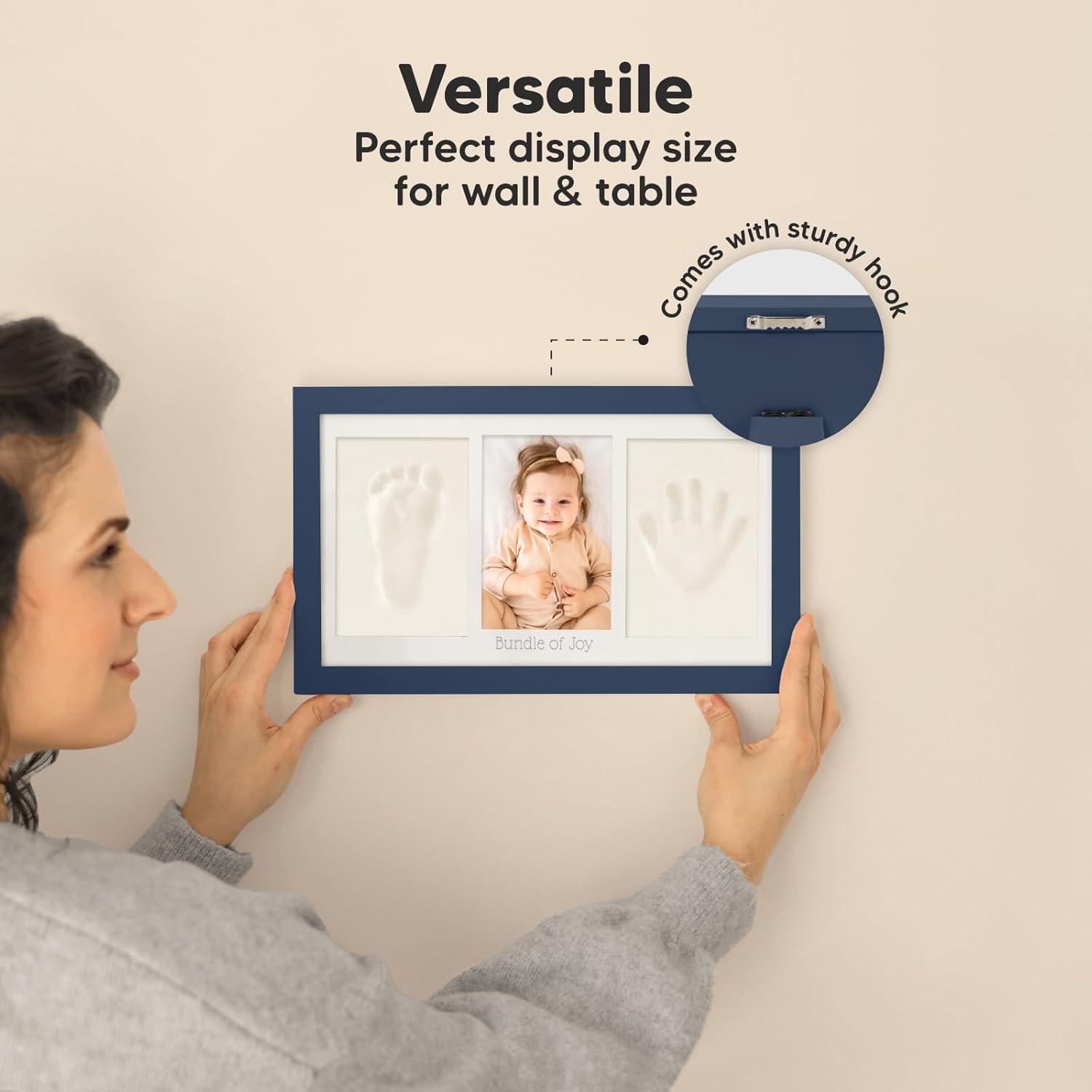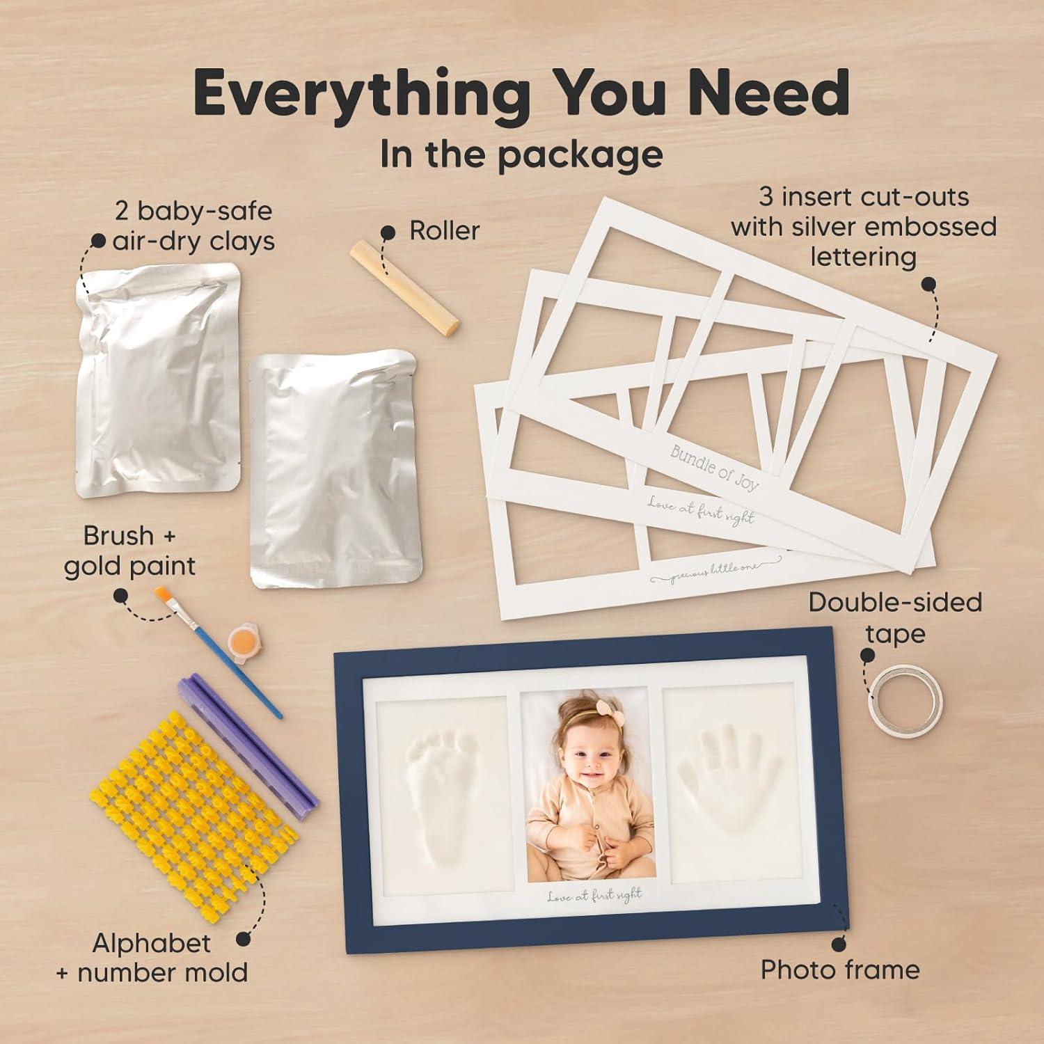 Baby Hand and Footprint Kit - Clay Handprint Keepsake Frame, Newborn Nursery Picture Frame, Personalized New Mom Gifts for Baby Shower & Registry (Alpine White)(Midnight Blue)
