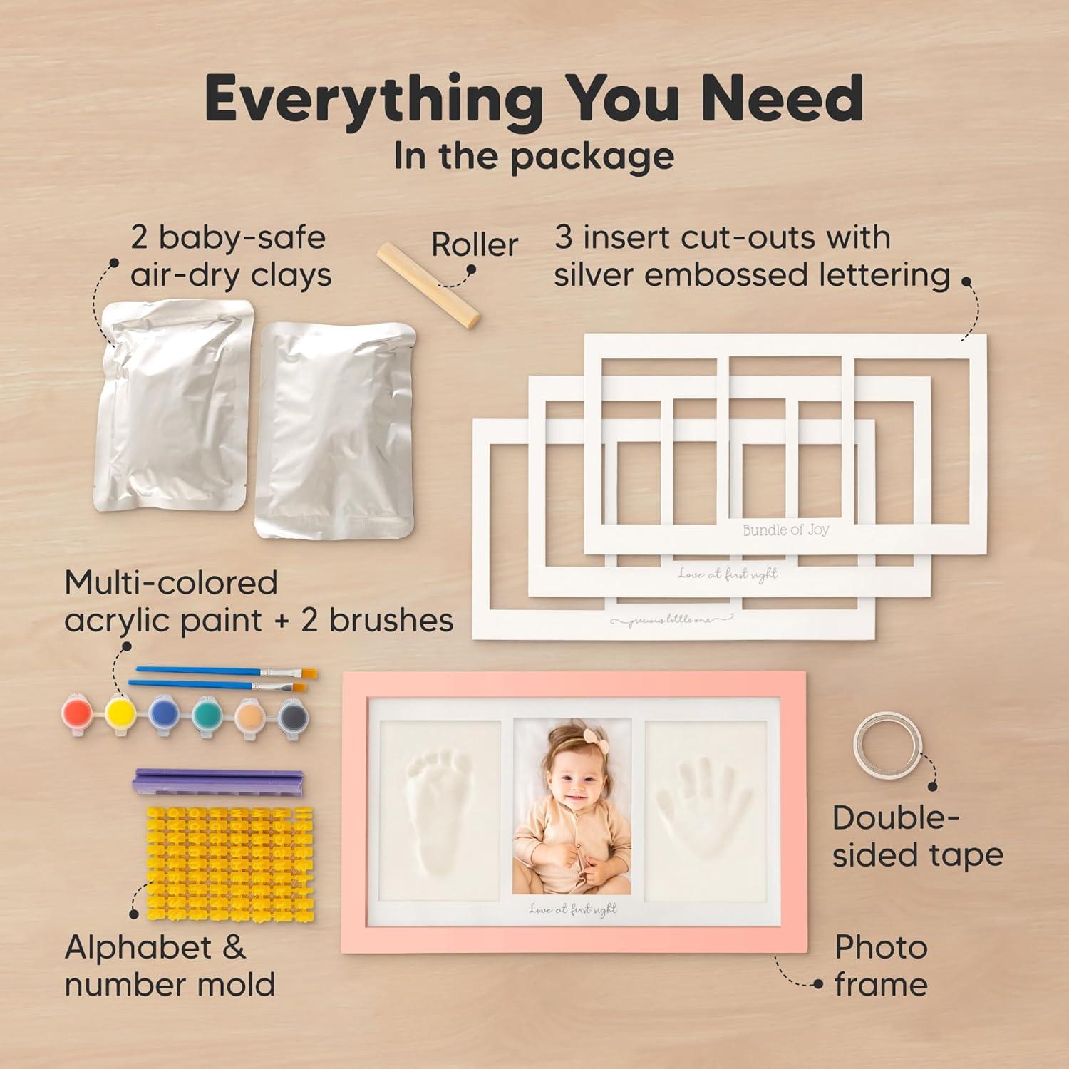 Baby Hand and Footprint Kit - Clay Handprint Keepsake Frame, Newborn Nursery Picture Frame, Personalized New Mom Gifts for Baby Shower & Registry (Alpine White)(Sweet Pink)