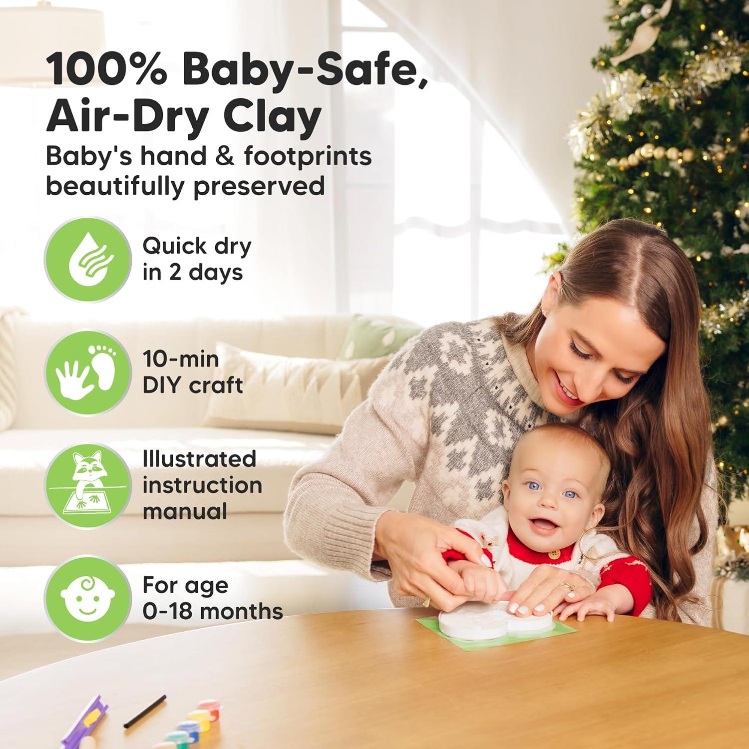 Food-Grade Clay – Our baby ornament handprint kit is made of high quality clay and is 100% safe for your newborn. Your baby footprint kit will stay in great condition even after years to come. A great baby handprint ornament for every parent.