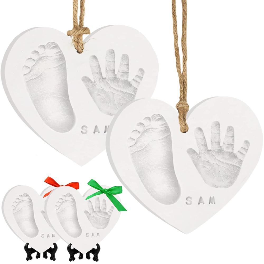 Baby Hand and Footprint Kit Keepsake - Quick-Dry Newborn Foot & Handprint Ornament Kit Boys, Girls, Personalized New Baby Gifts for New Parents, Cute Christmas & Keepsake Gifts (Duo Heart)(Duo Heart)